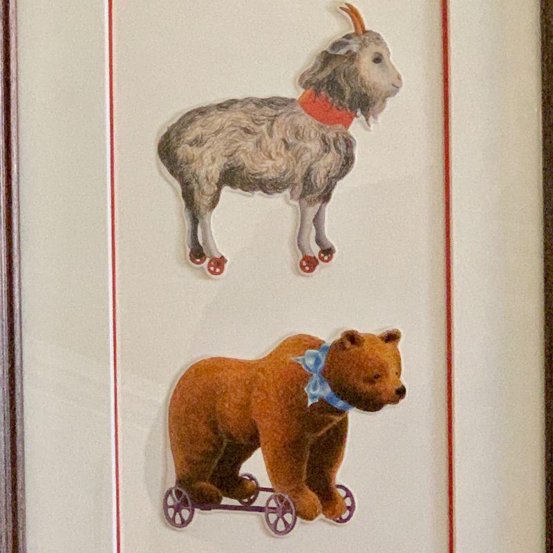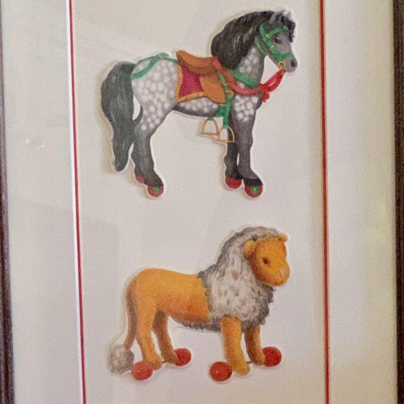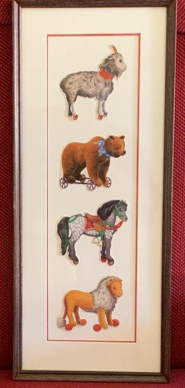 LOT 160  FRAMED ANTIQUE RIDING TOY CUT OUTS CHILDREN'S ROOM DECOR