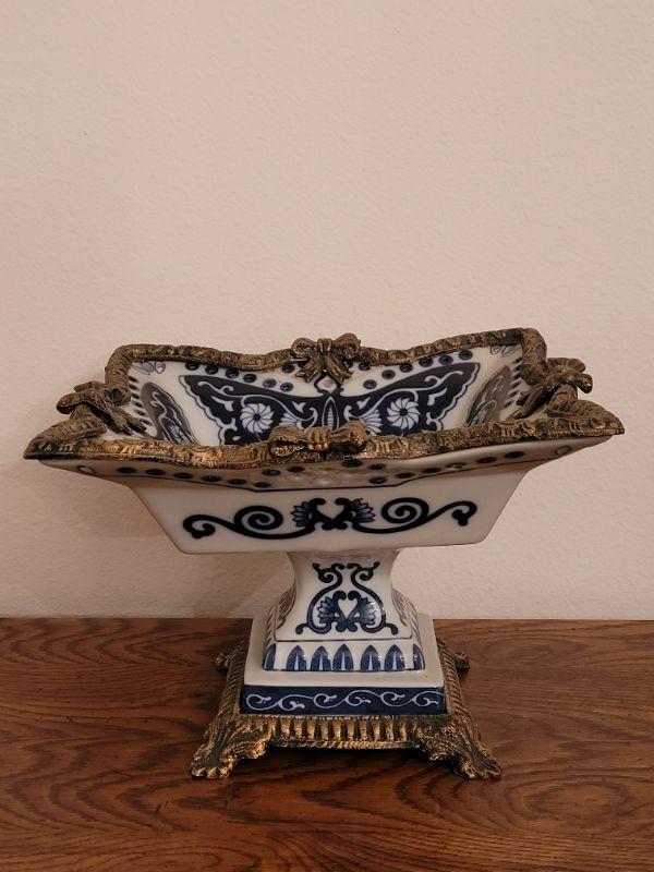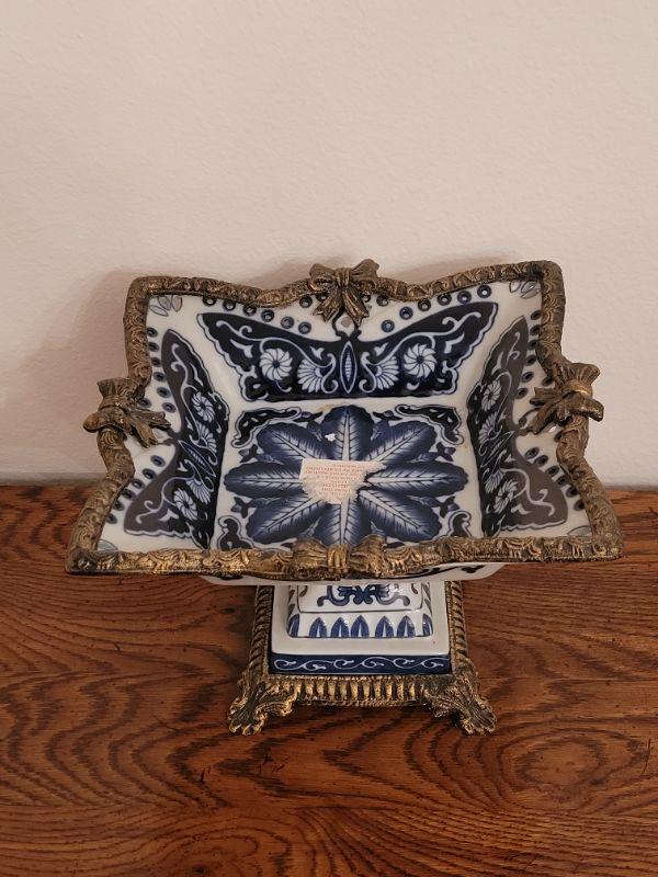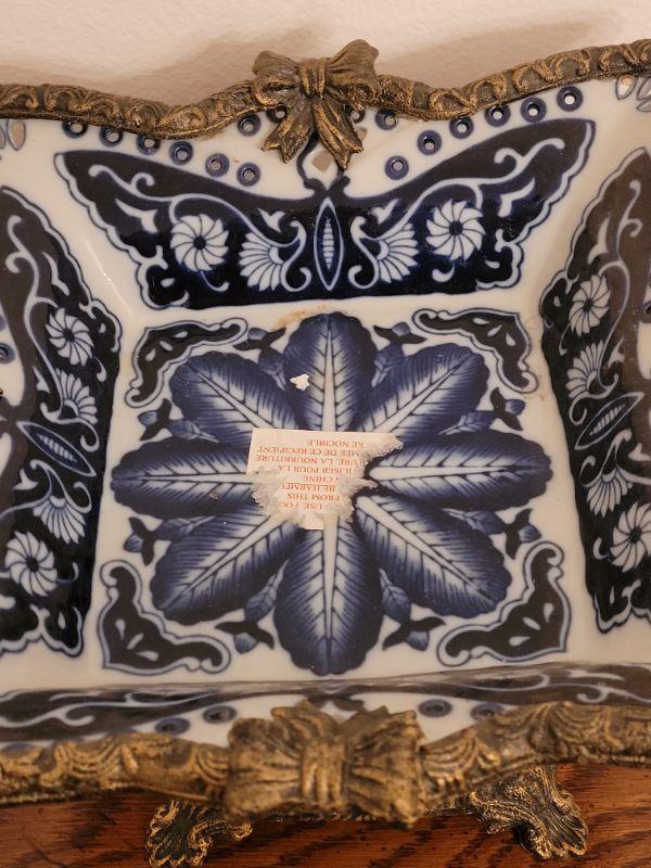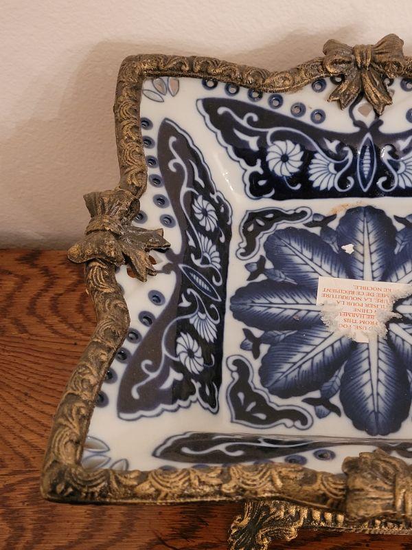 Lot 162: BOMBAY Blue, White & Brass 12.5" × 9"
