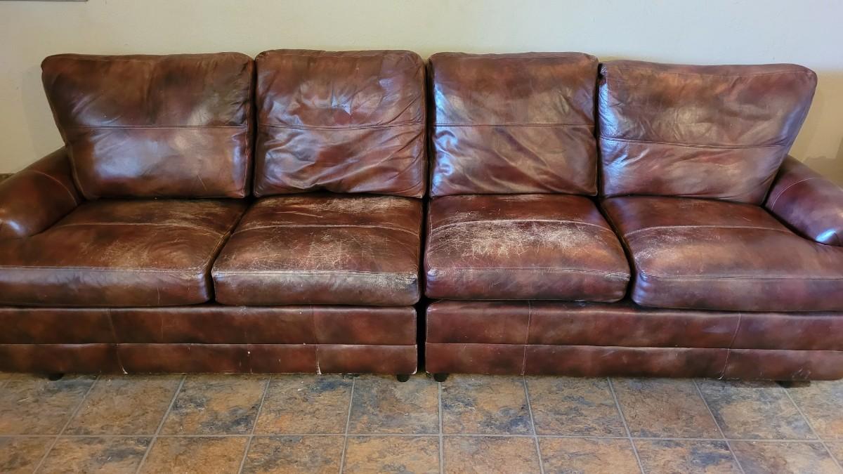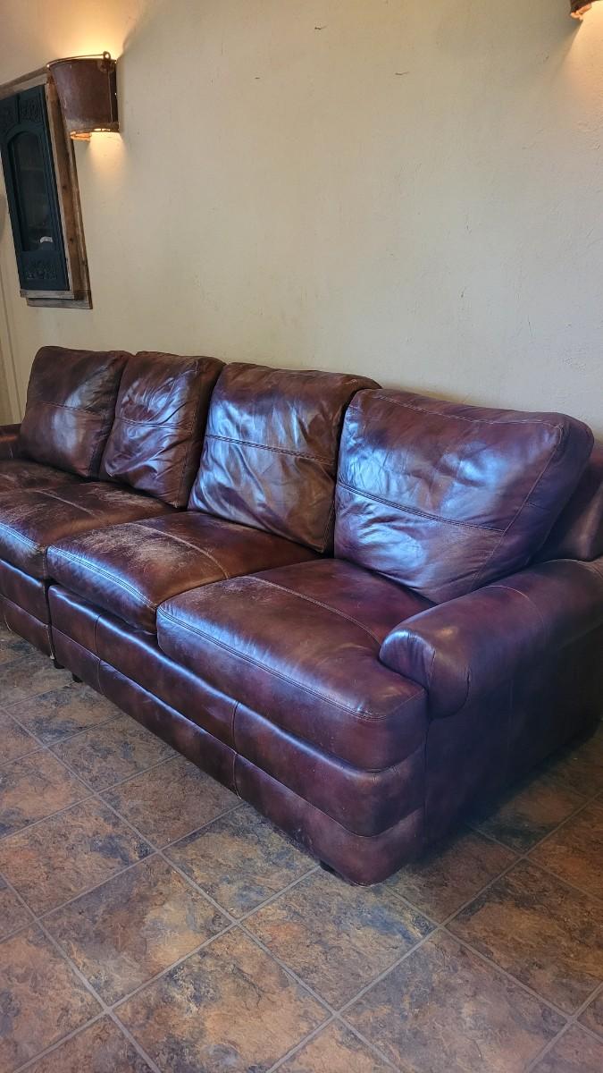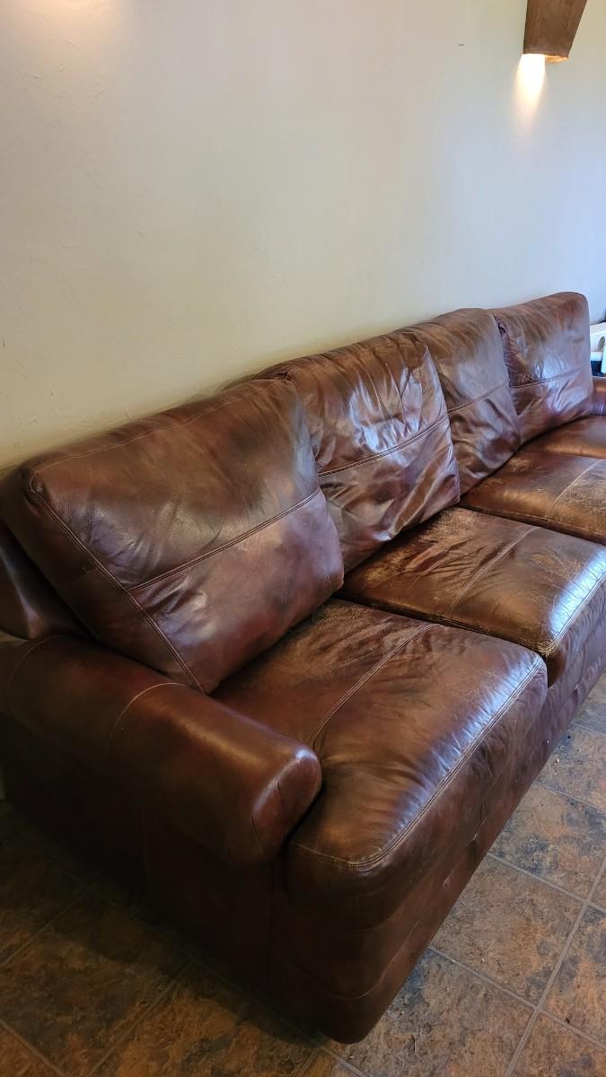 Lot 163: La-z-Boy 10ft. Long (2 Pieces) Leather Brown Couch