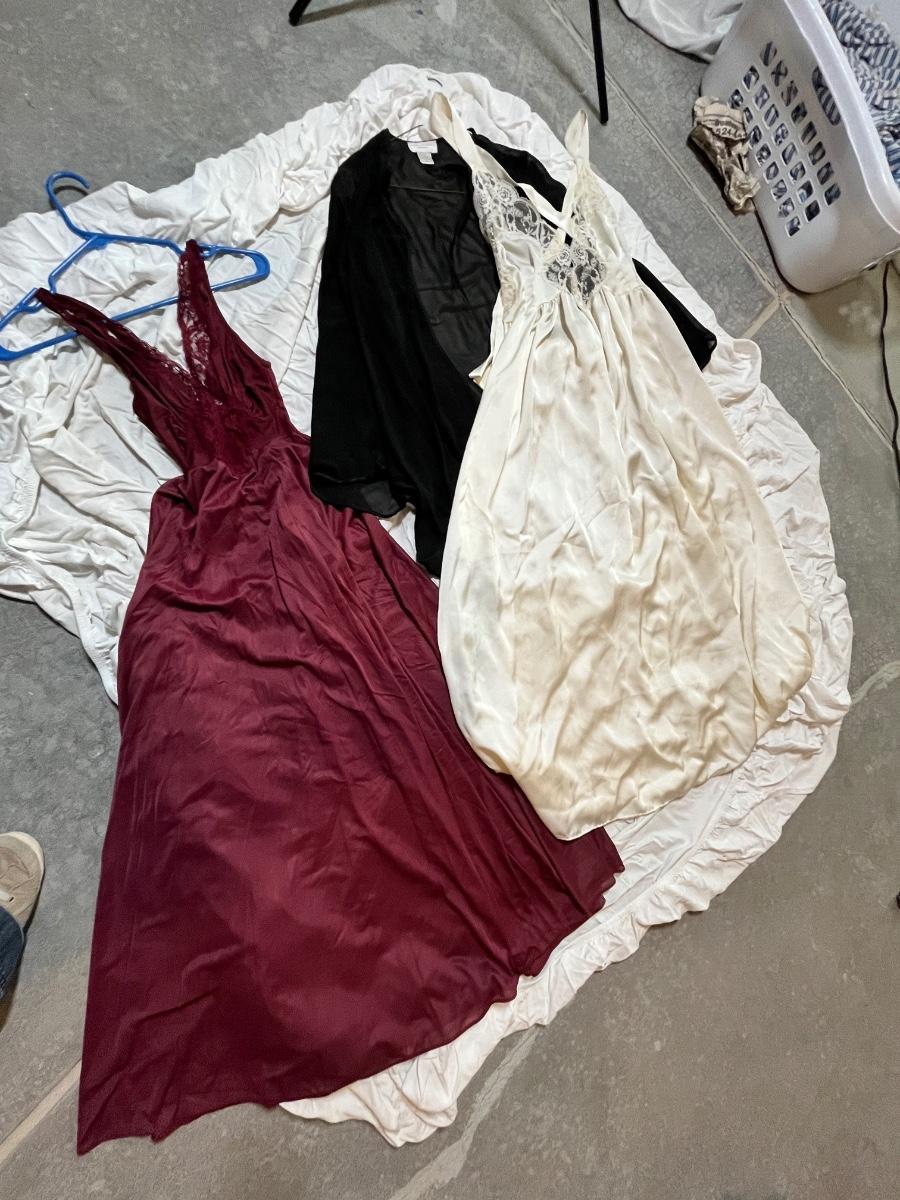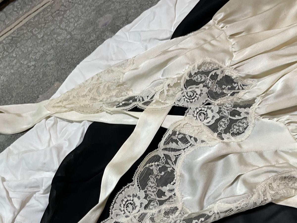 Lot 164 2 silky/Satin nightgowns (burgandy & ivory) sheer black cover