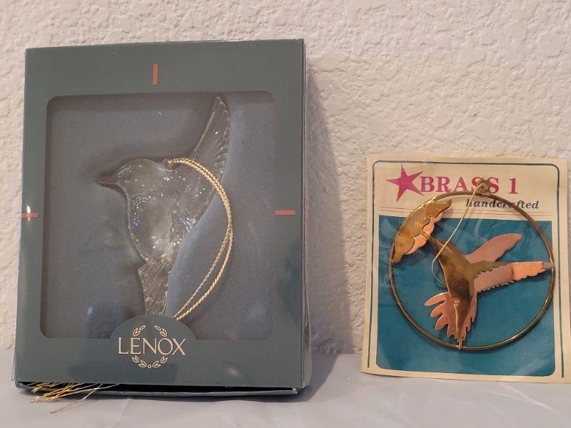 Lot 168: Lenox Hummingbird Ornament and Artist made Brass Hummingbird Ornament