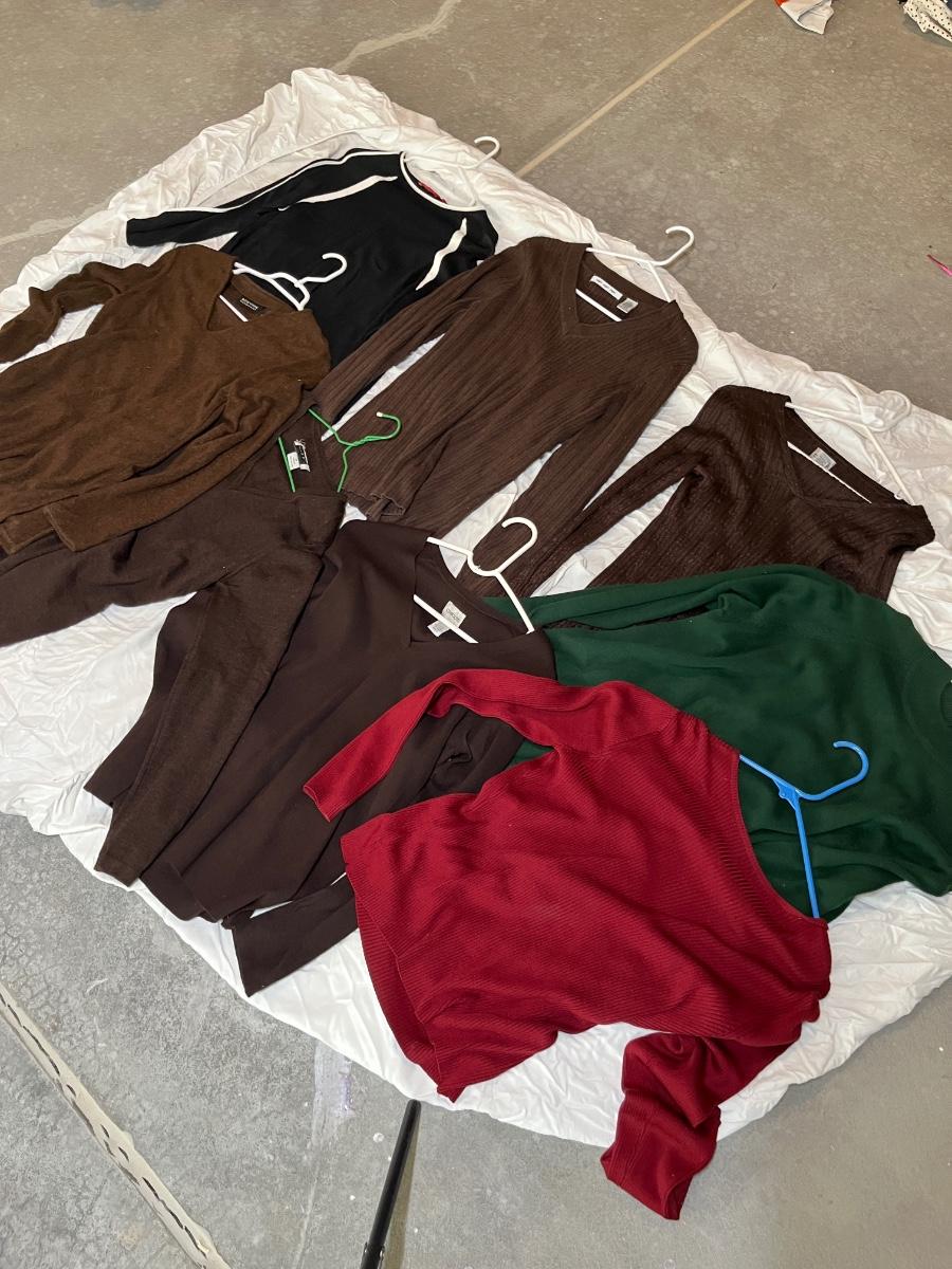 8. Sizes are approximate, you can estimate as our lot number signs are 3.5" long. Also we use an 18" & 36" measuring stick.  We try on certain things to do actual measurements. No guarantees on actual sizes, we try our best!