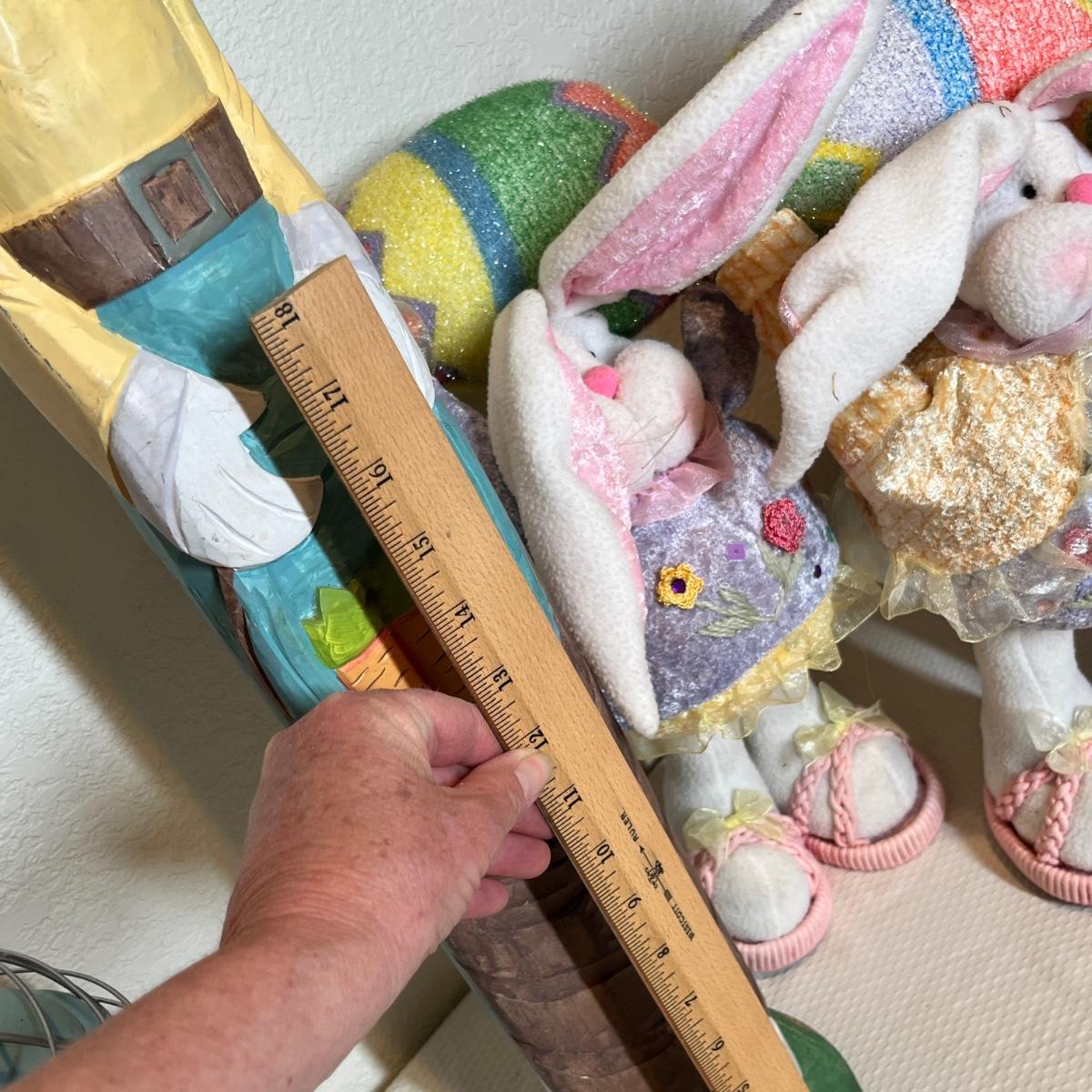8. Sizes are approximate, you can estimate as our lot number signs are 3.5" long. Also we use an 18" & 36" measuring stick.  We try on certain things to do actual measurements. No guarantees on actual sizes, we try our best!