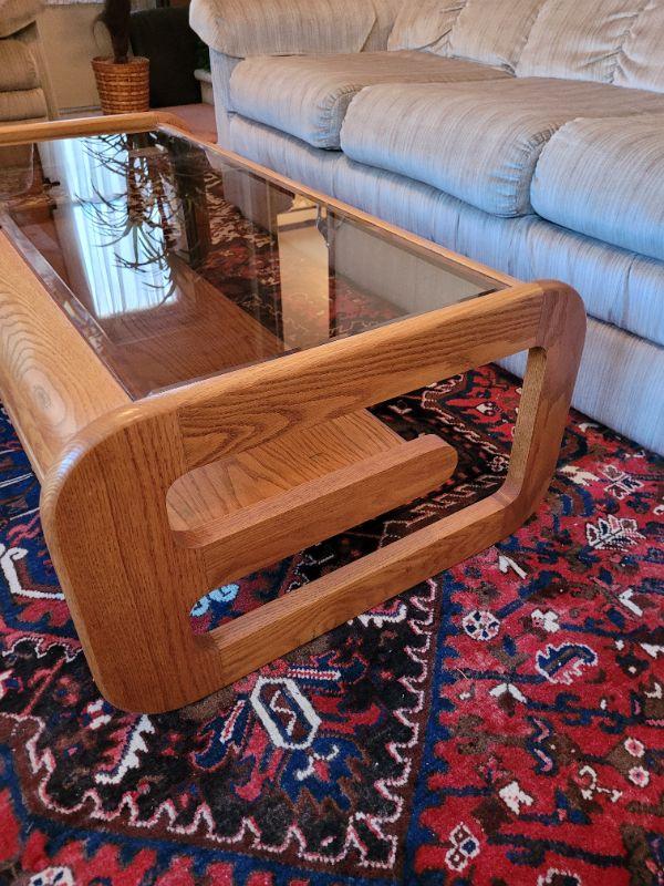 Lot 170: Oak & Glass Coffee Table 48" × 26" × 16"