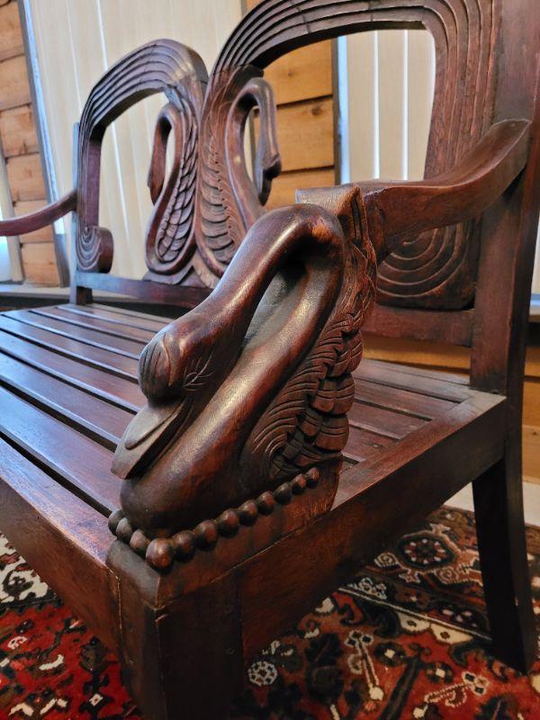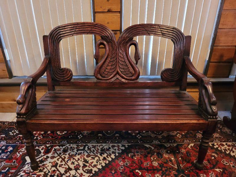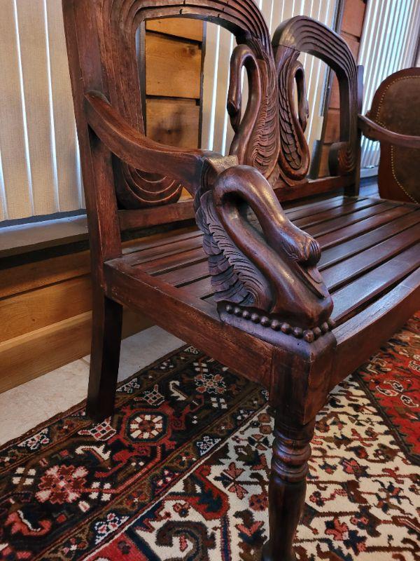 Lot 173: Carved Swan Bench 53" × 21.5" × 39.75"