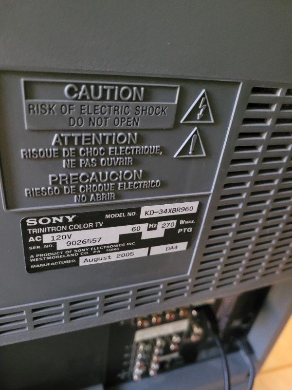 Lot 174: Sony HDTV Trinitron kd-34xbr960 with Remote