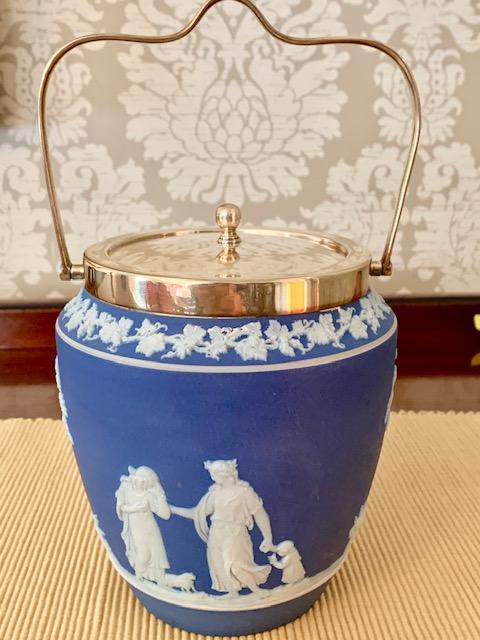 LOT 174 Wedgwood Jasperware Biscuit Jar Blue