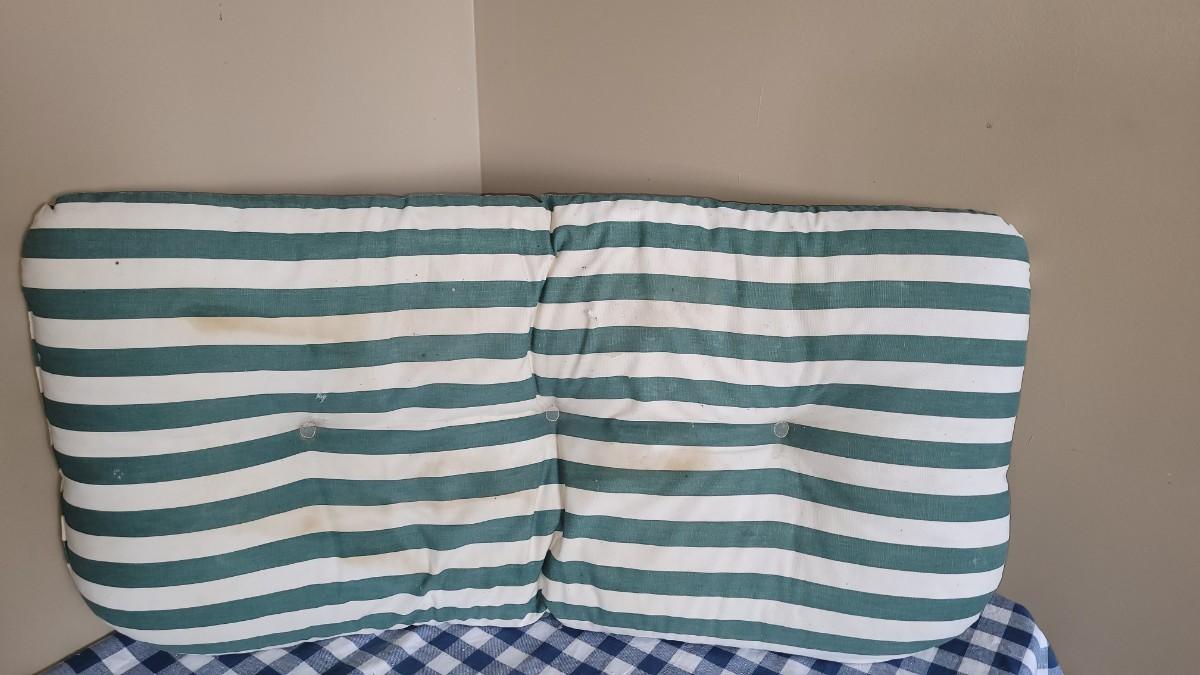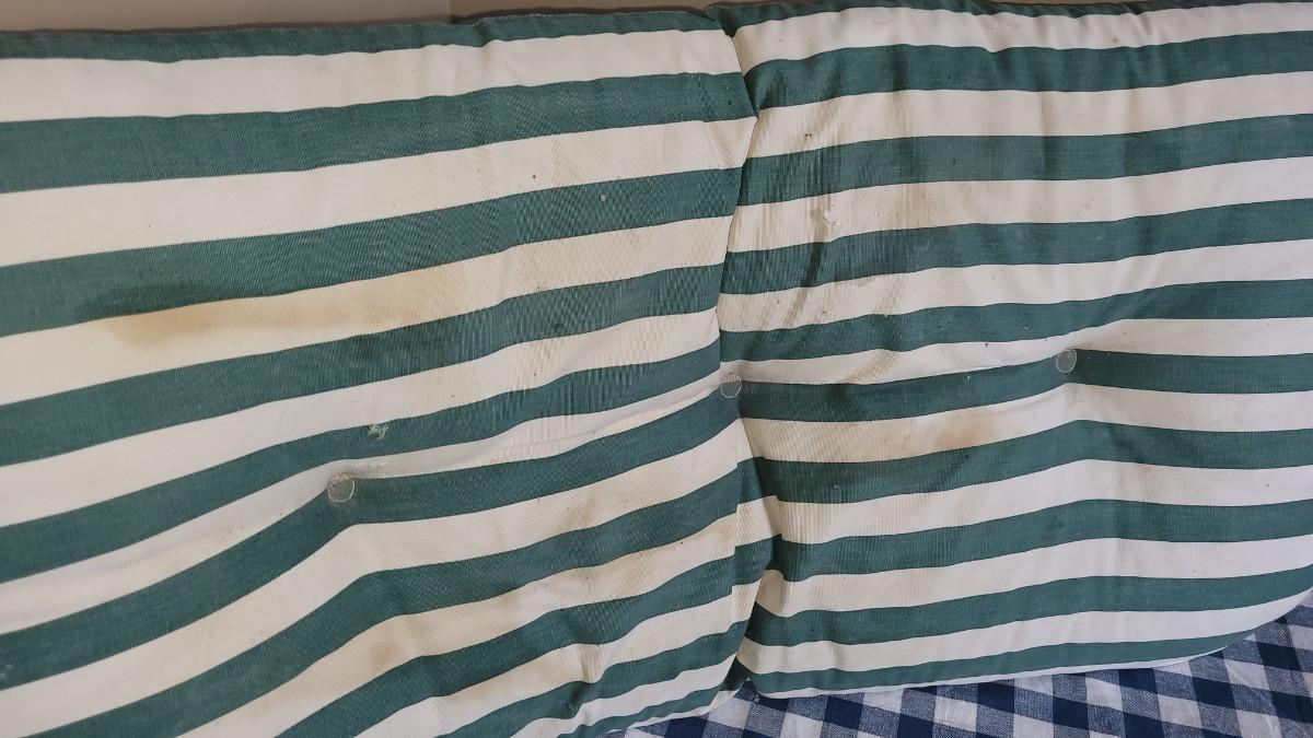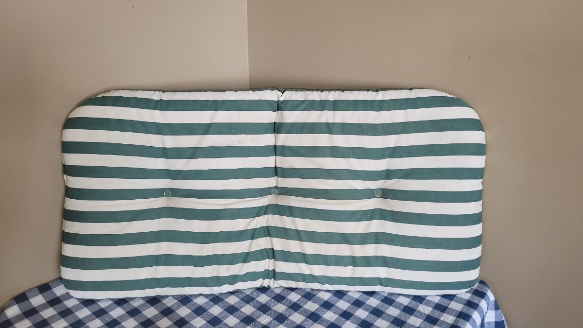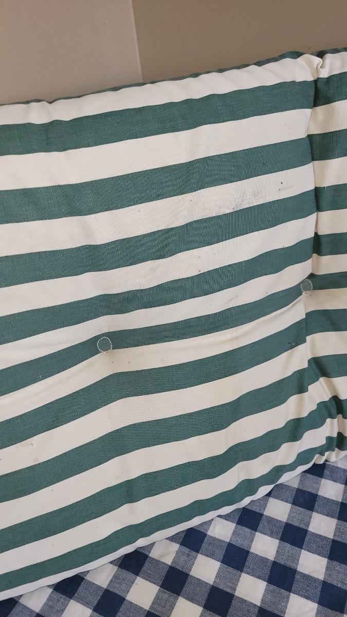 Lot 179: Vintage Green & White Stripe Bench Cushion (Has some Discoloration)