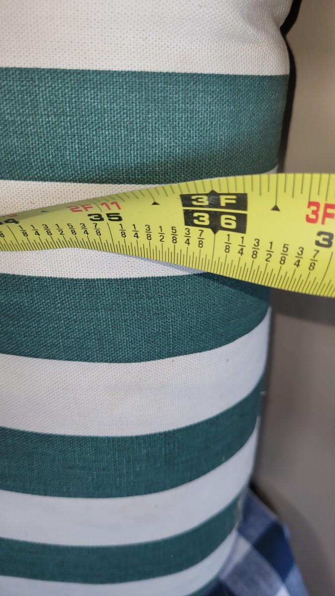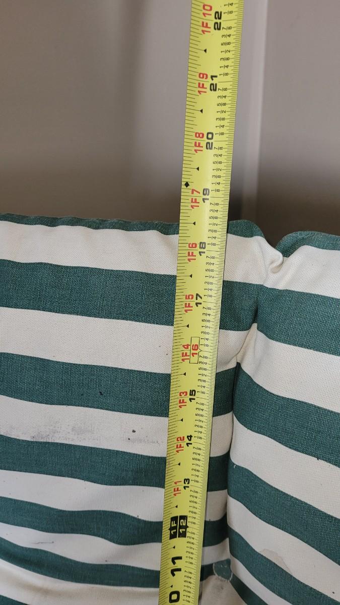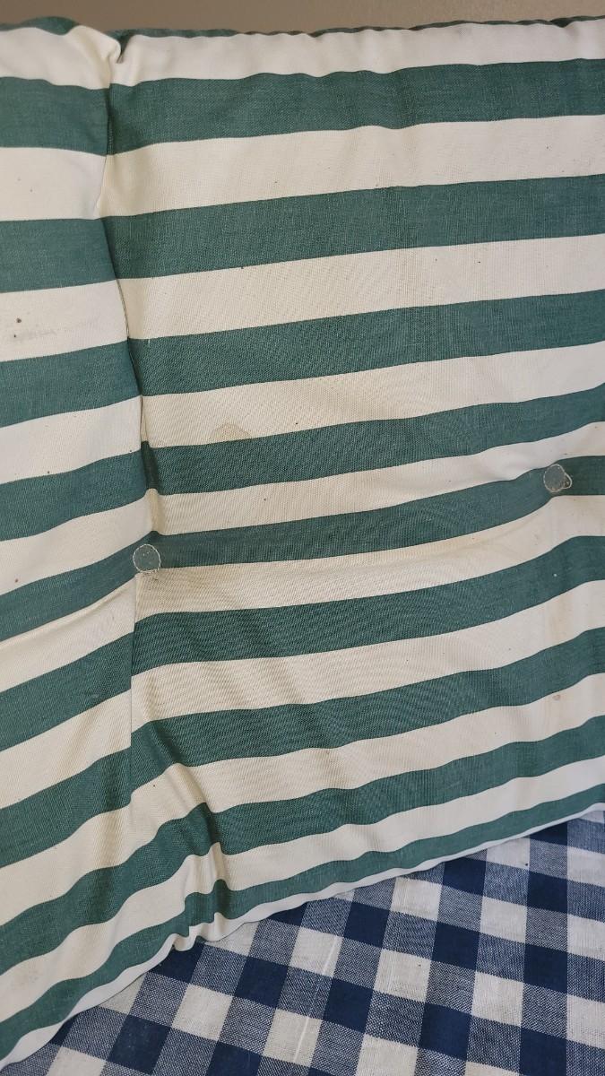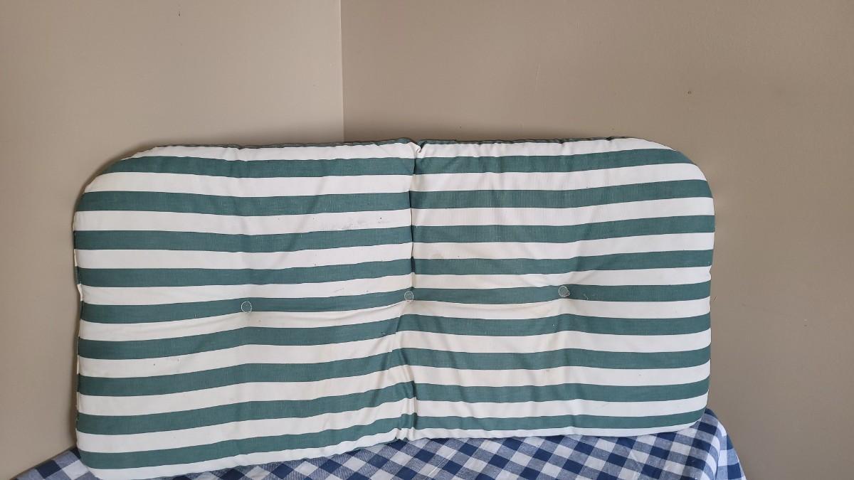 Lot 179: Vintage Green & White Stripe Bench Cushion (Has some Discoloration)