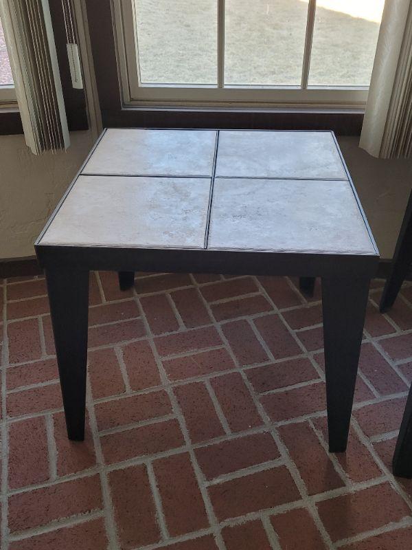 Lot 189: Larrabee's Metal and Tile Side Table 24" × 21"