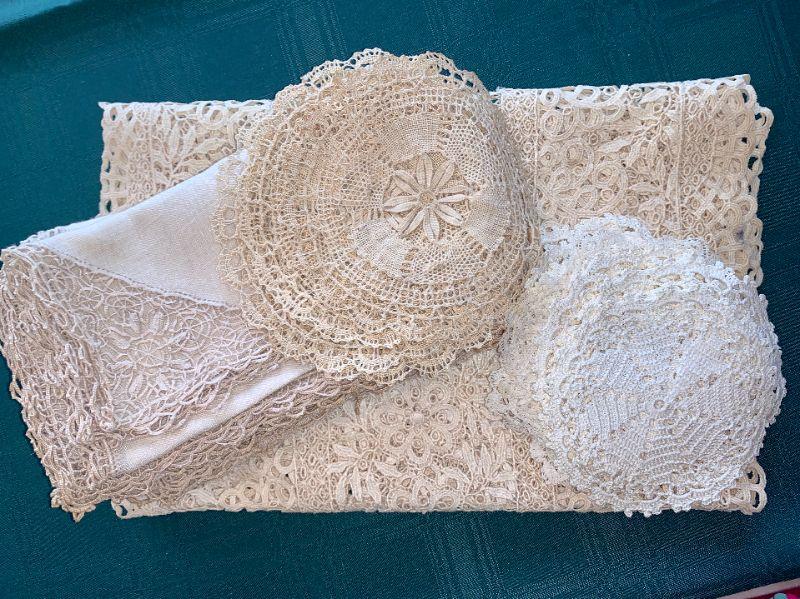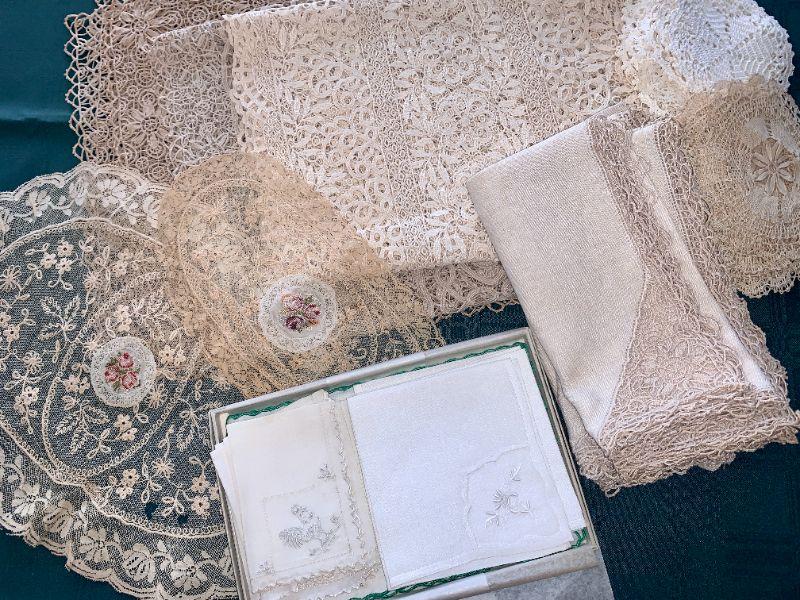 LOT 191 GROUP LOT OF ANTIQUE LINENS TATTING CROCHET LACE