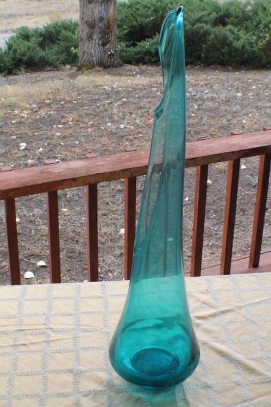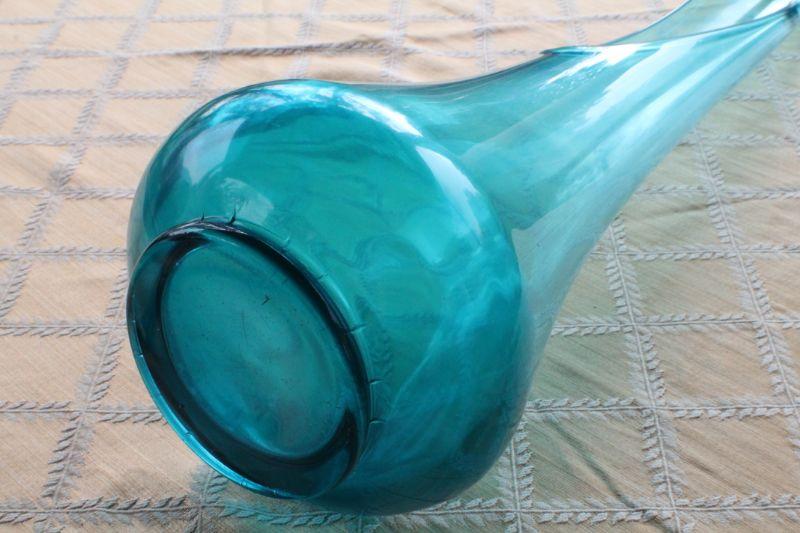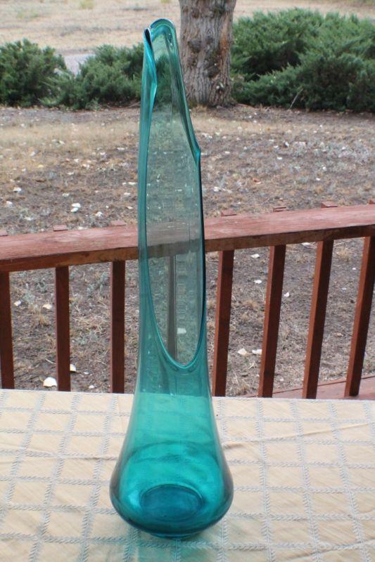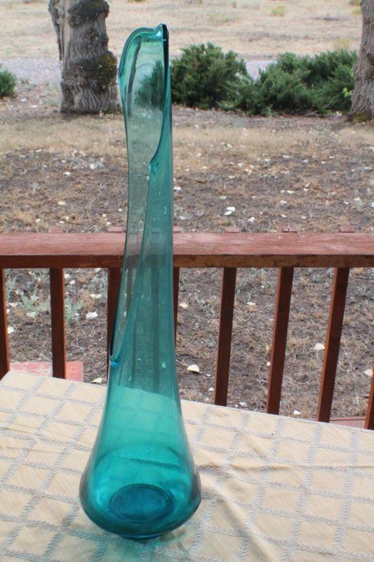 Lot #20: Mid Century Tall Clear Blue Deco Glass Vase