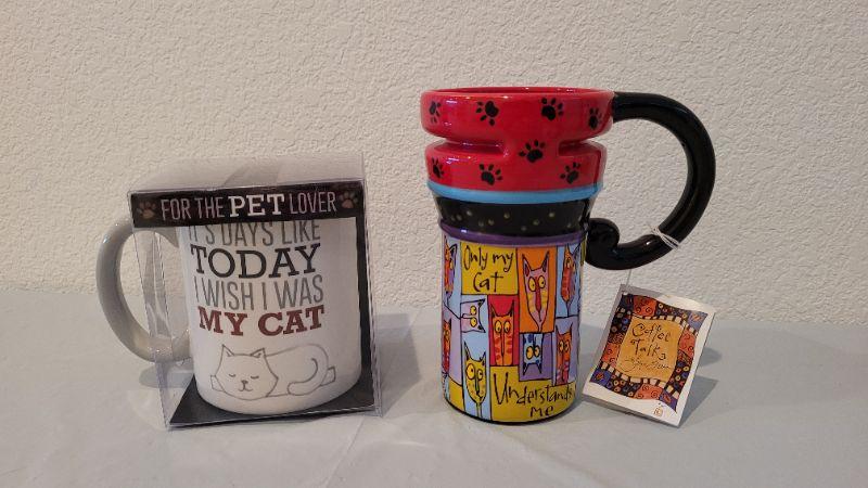 Lot 20: (2) New CAT THEME Coffee Beverage Mugs