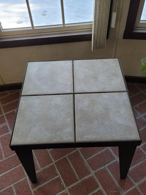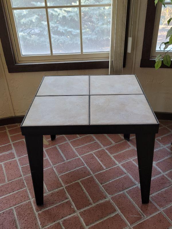 Lot 200: Larrabee's Metal and Tile Table (Tiles are removable) 24" × 21"