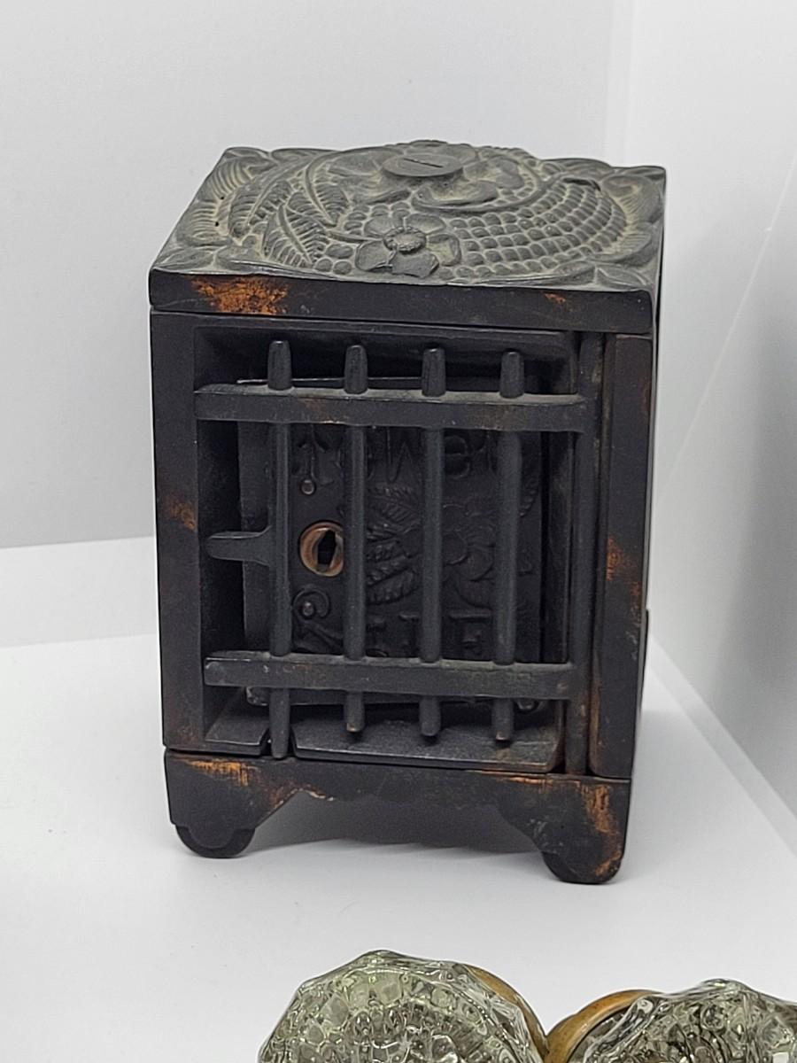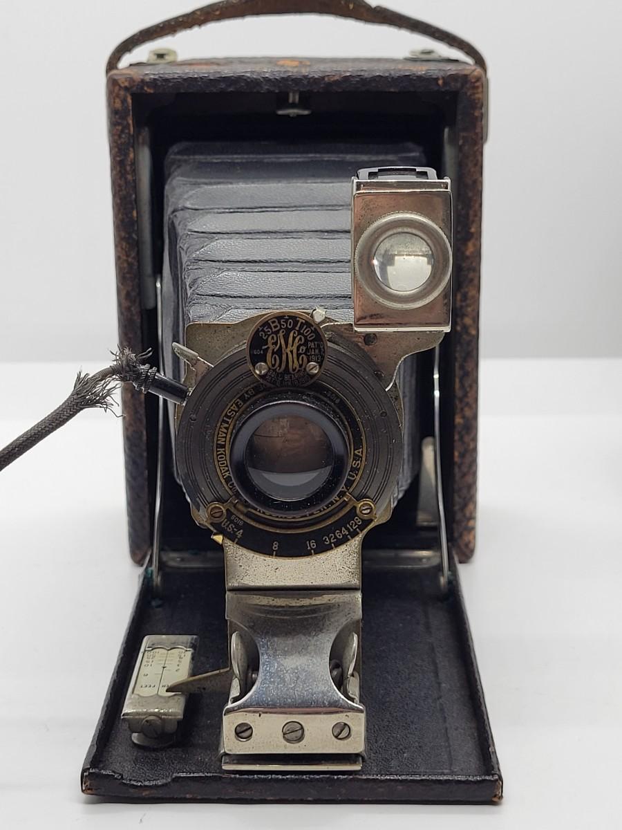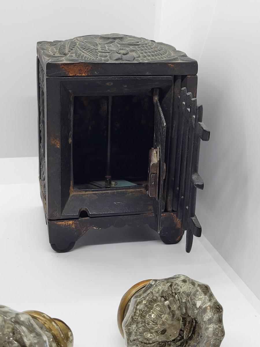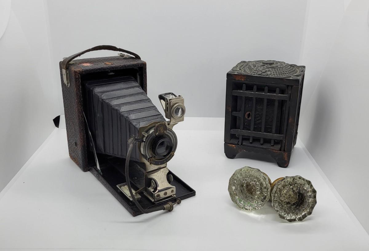 LOT 504L: Antique Eastman Kodak Premo No. 1 Camera, Cast Iron Safe Bank, Glass Door Knobs