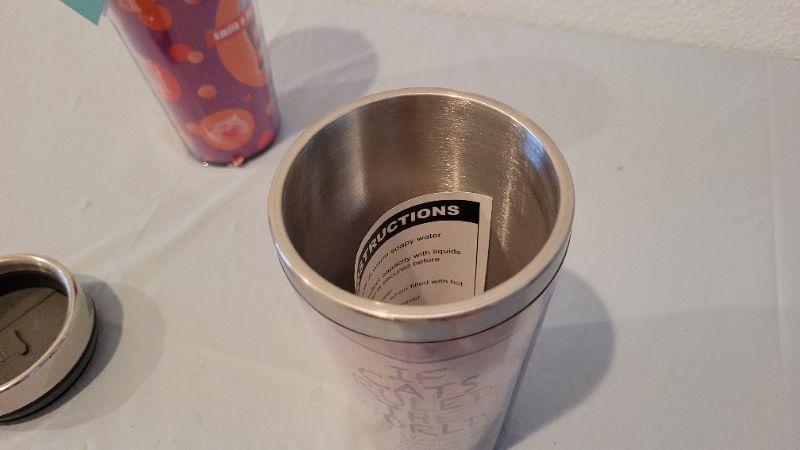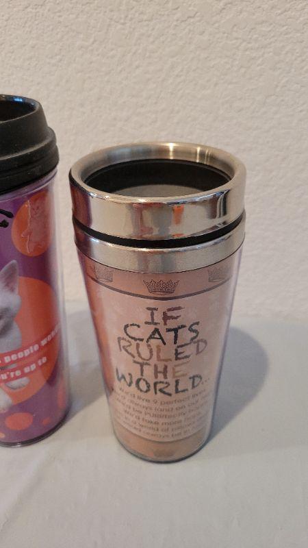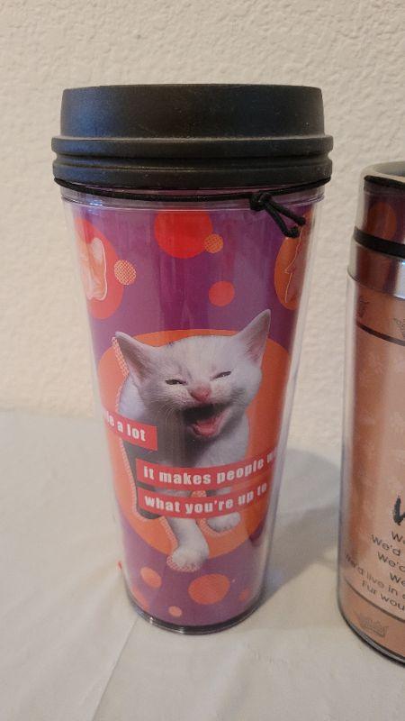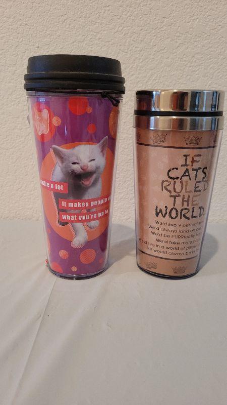 Lot 21: (2) New CAT THEME Travel Beverage Mugs