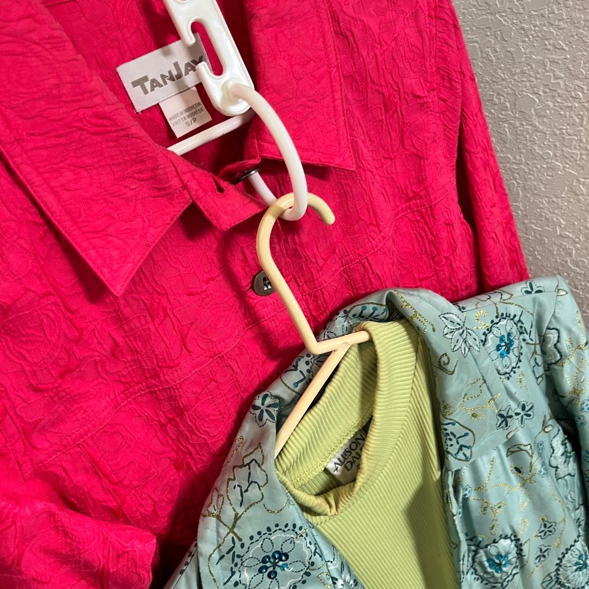 8. Sizes are approximate, you can estimate as our lot number signs are 3.5" long. Also we use an 18" & 36" measuring stick.  We try on certain things to do actual measurements. No guarantees on actual sizes, we try our best!