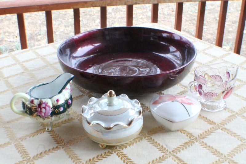 Lot #211: Group of (4) Assorted Vintage Small Decorative Dishes + Large Bowl