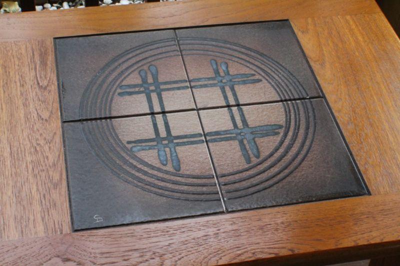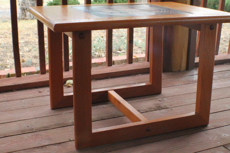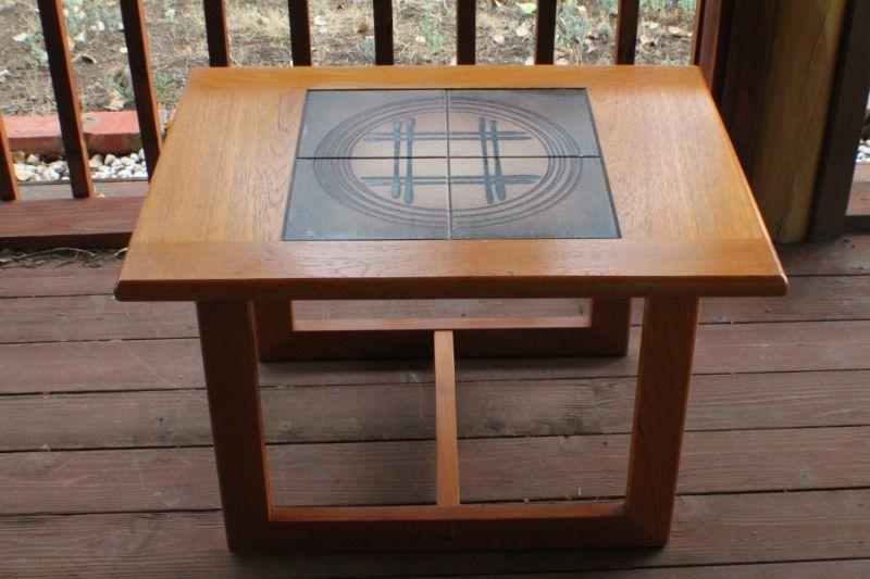 Lot #219: Vintage Mid Century Modern Square Side Table w/ Decorative Marble Tile Top 23" x 30.5" x 20"