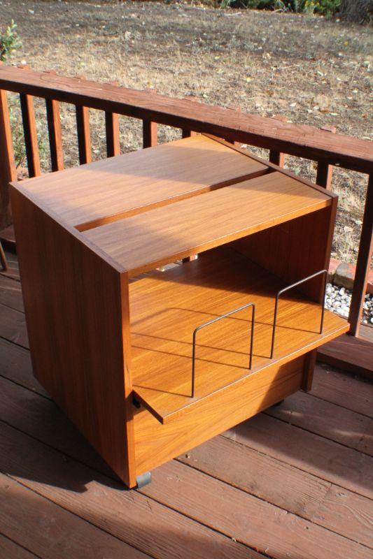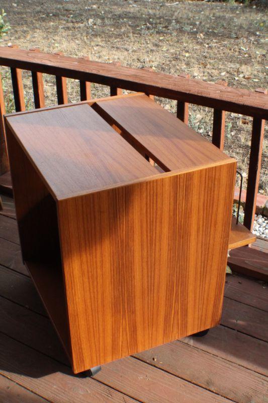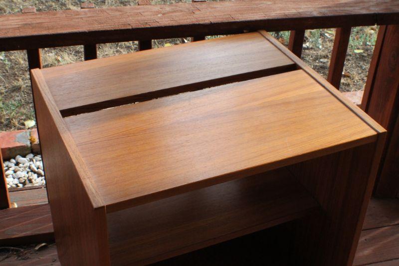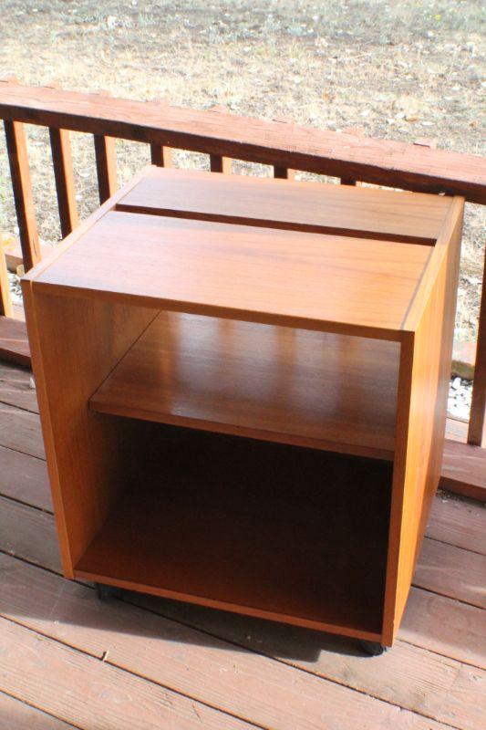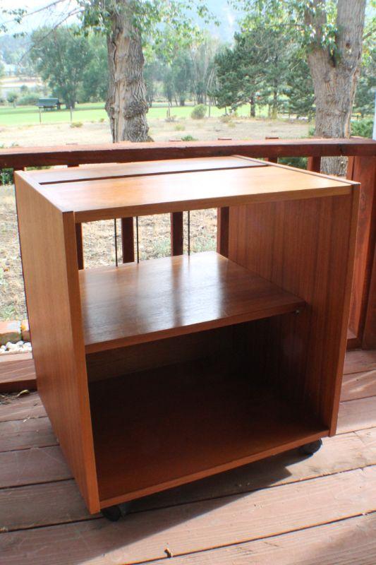 Lot #222: Vintage Mid Century Modern Open Face Sliding Middle Shelf Display/Storage Cabinet 23.5" x 20" x 26.5"