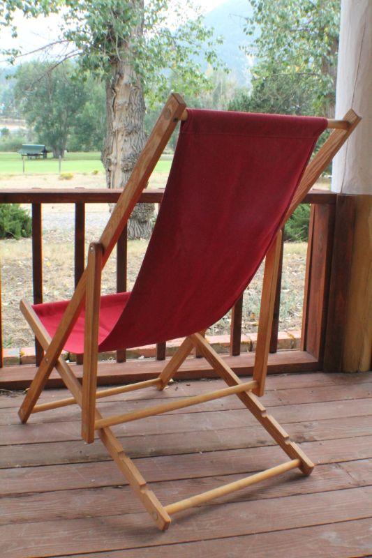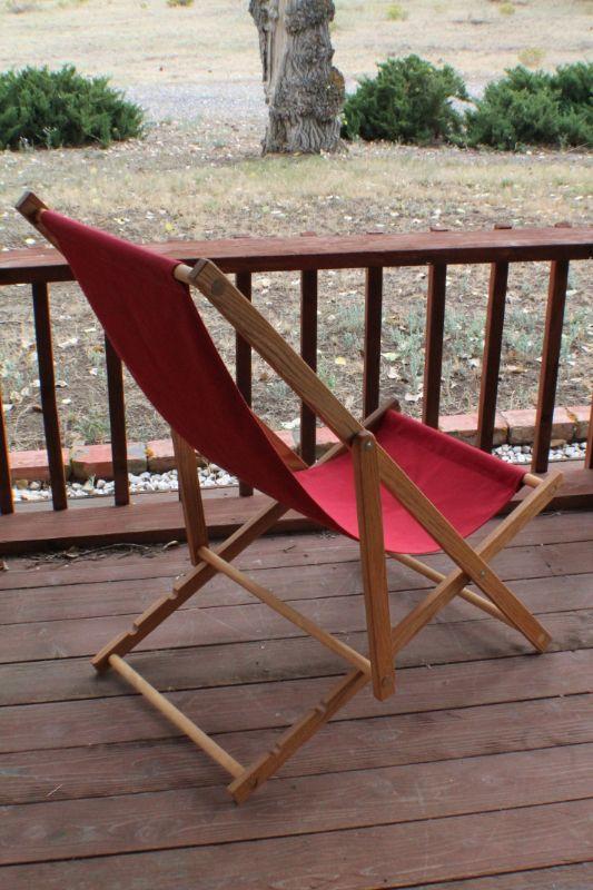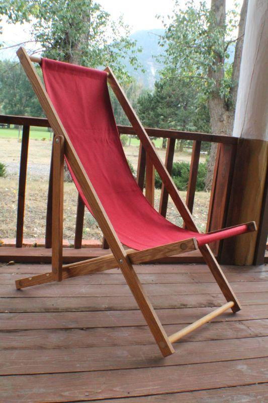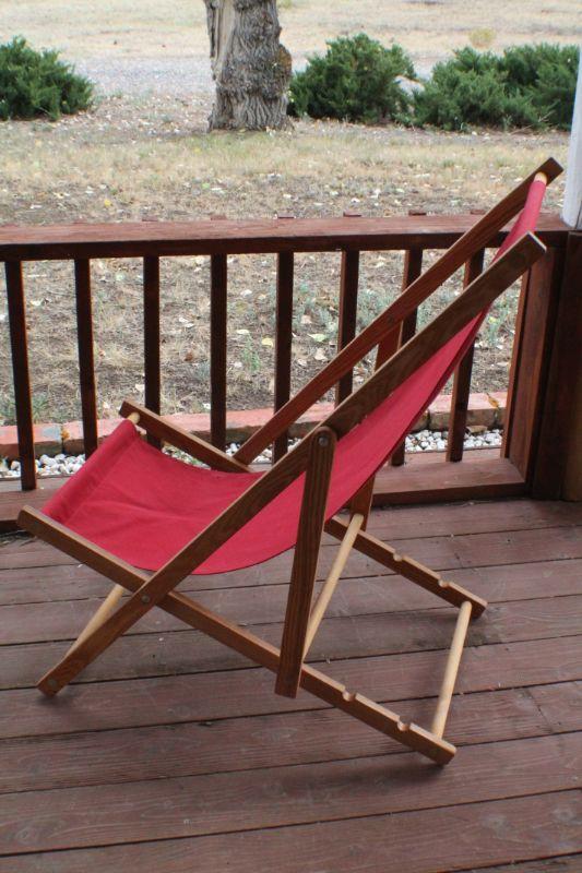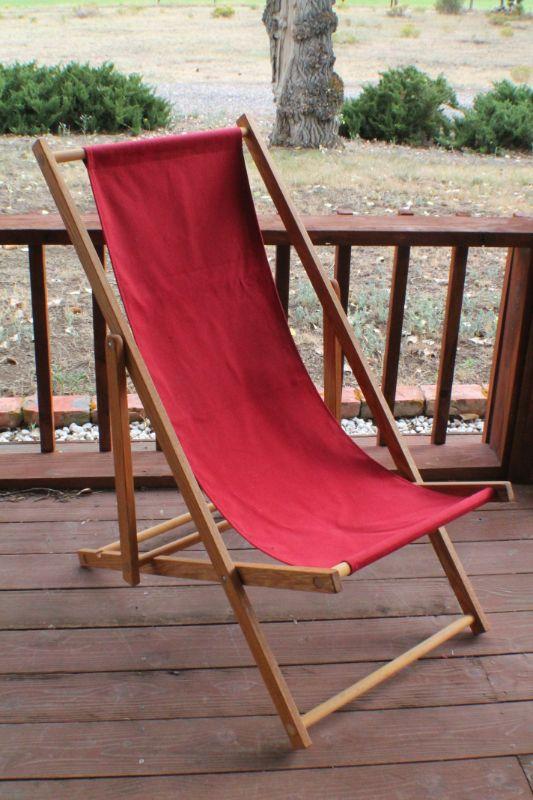 Lot #223: Vintage Mid Century Modern Folding Lounge Chair Original Red Fabric