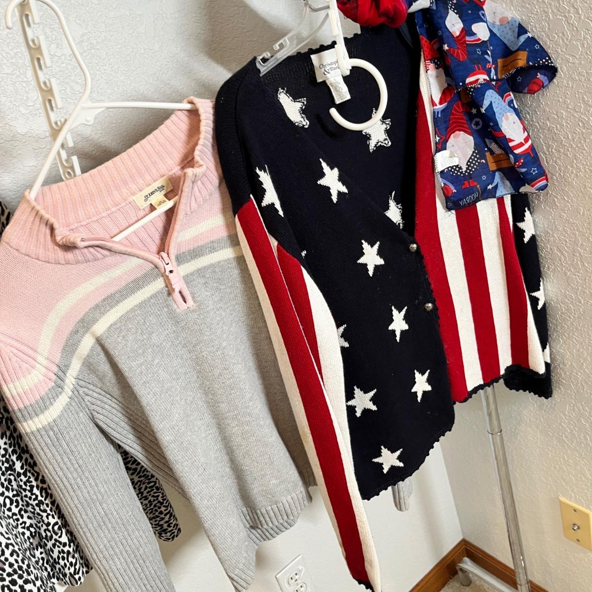 8. Sizes are approximate, you can estimate as our lot number signs are 3.5" long. Also we use an 18" & 36" measuring stick.  We try on certain things to do actual measurements. No guarantees on actual sizes, we try our best!