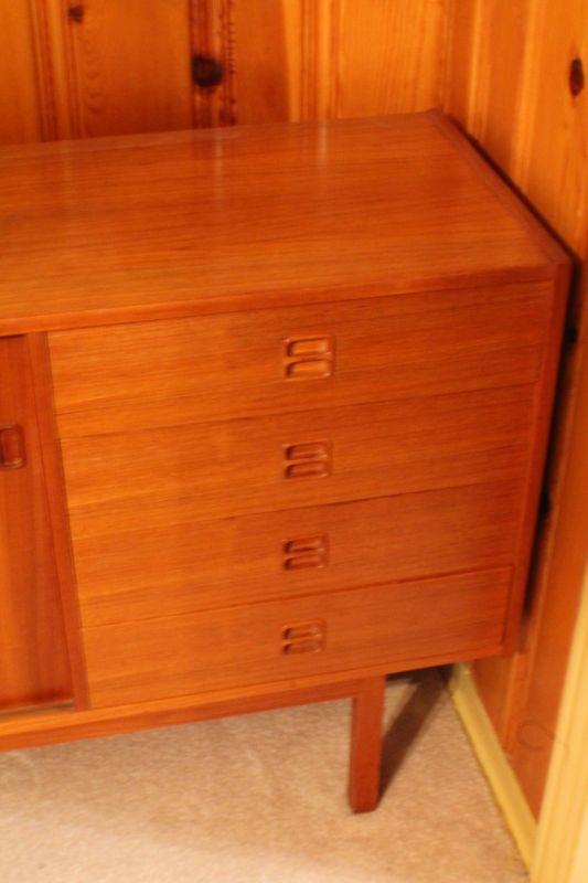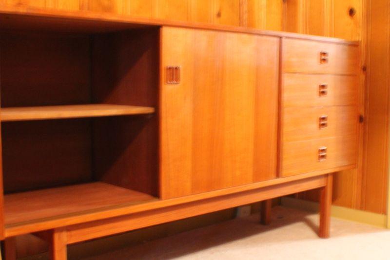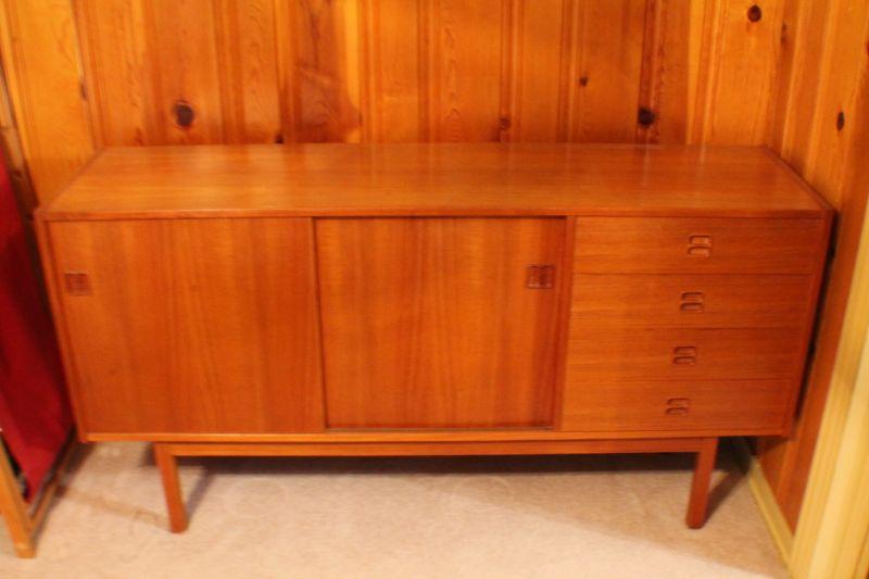 Lot #233: Vintage Mid Century Modern MADE IN DENMARK Sliding Door 4 Drawer Buffet 59" x 16" x 30.5"