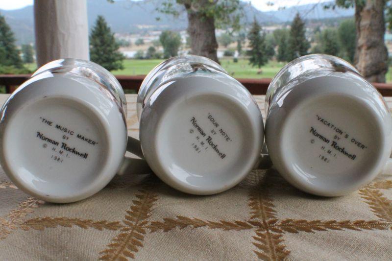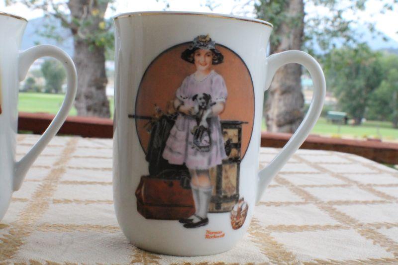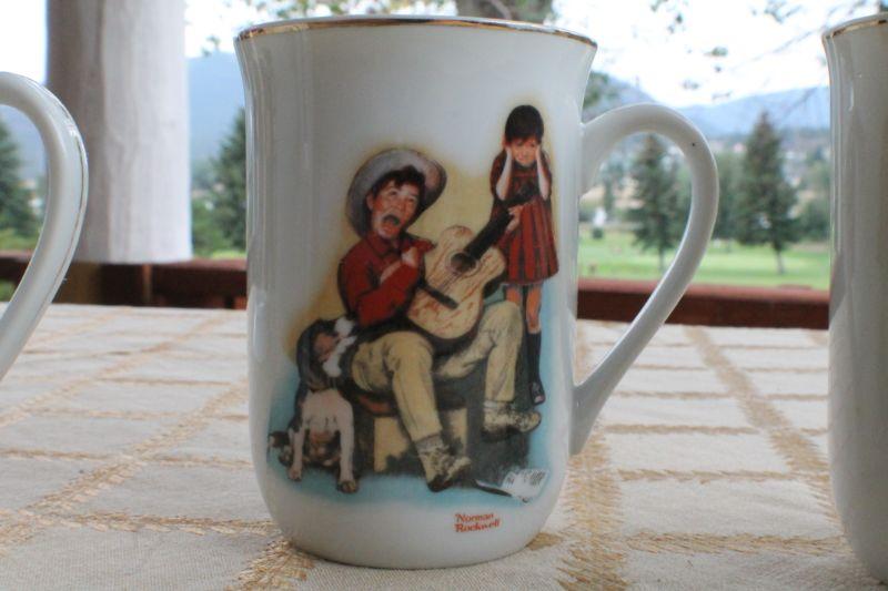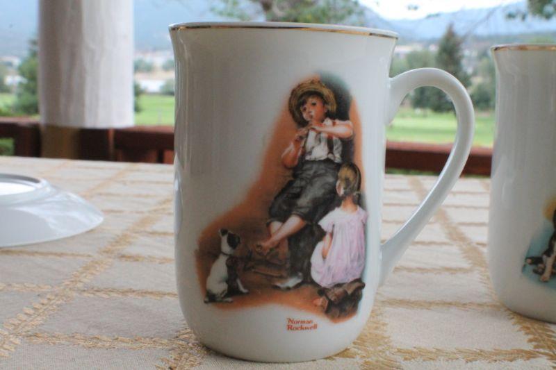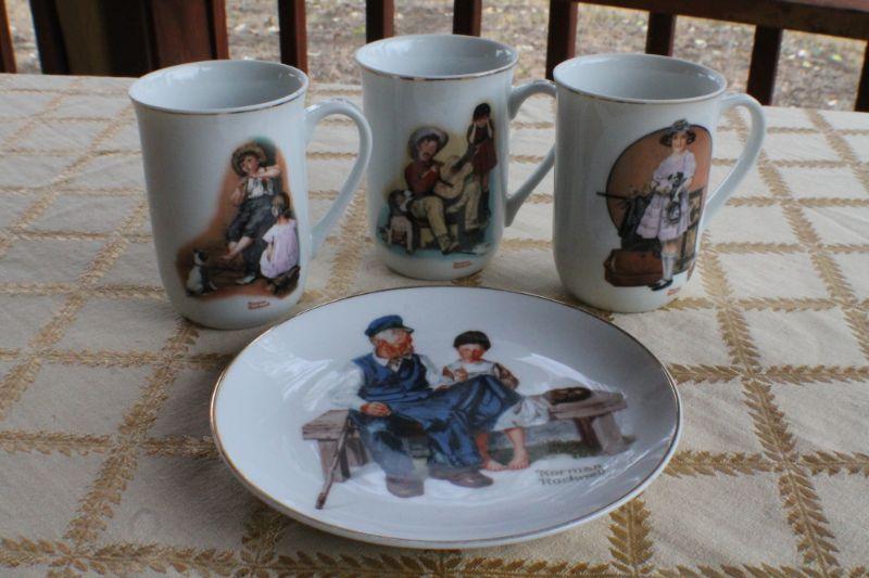Lot #235: Vintage Group 1980's NORMAN ROCKWELL Design Coffee Cups w/ Large Plate