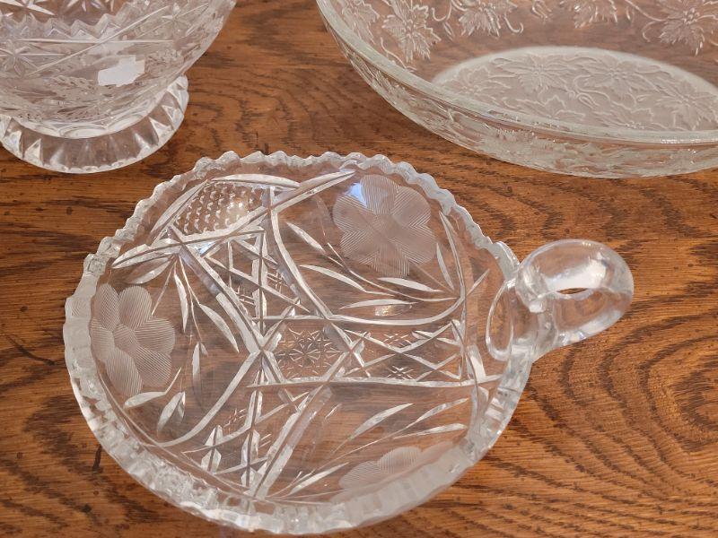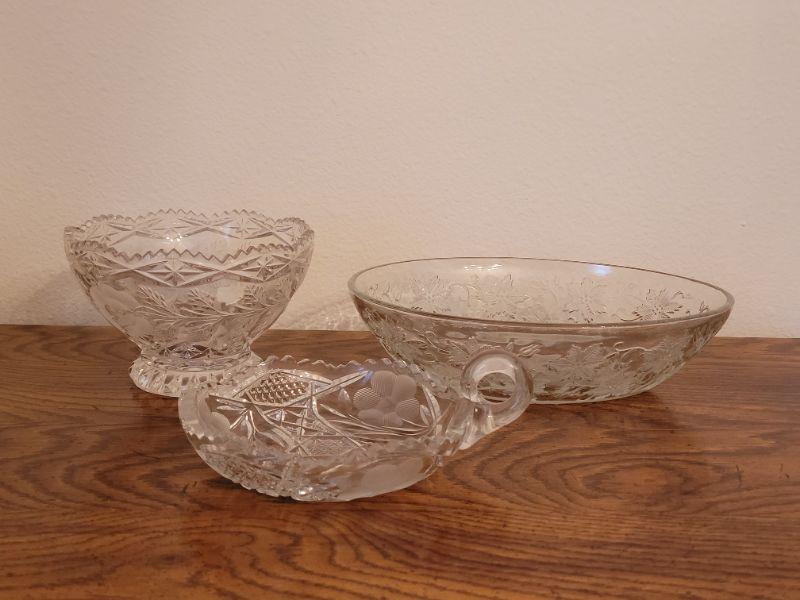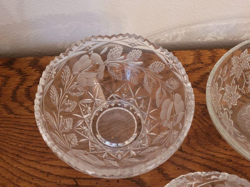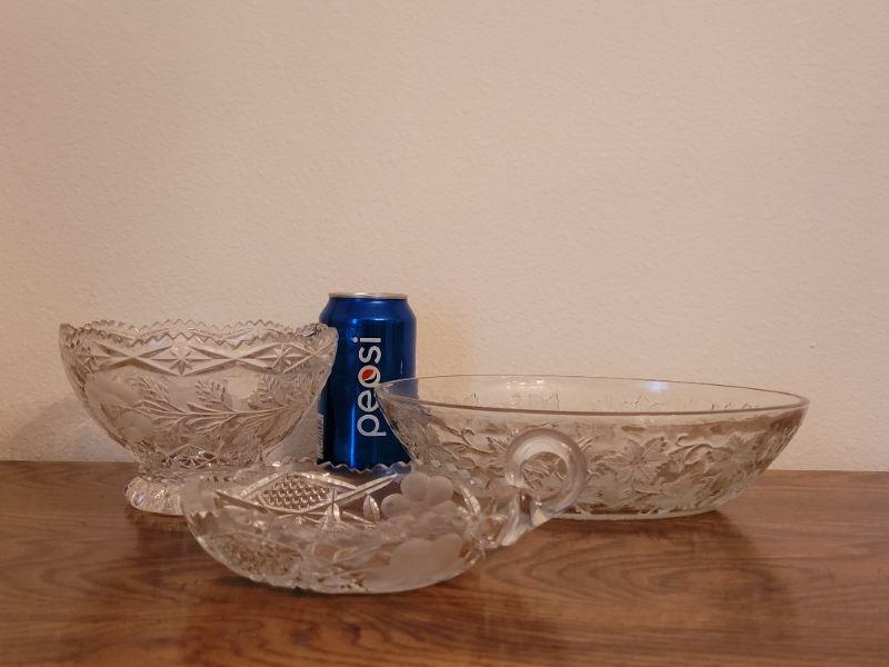 Lot 235:  (2) Cut Crystal and (1) Glass Floral Theme Bowl