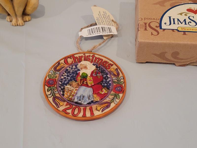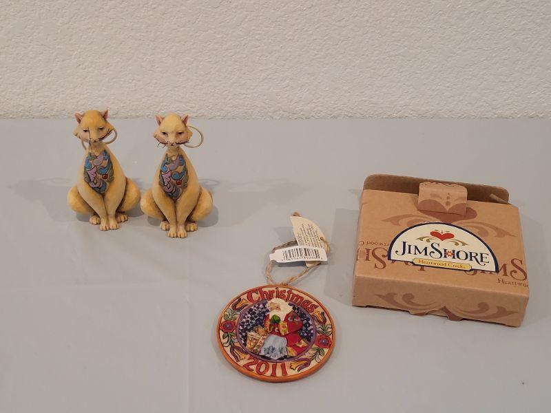 Lot 235: New Jim Shores Christmas Ornament and (2) unmarked Jim Shores Kitties