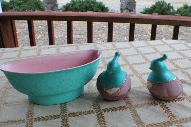 Lot #238: Vintage Group of (2) Birds and One Dish by MADDUX of CALIFORNIA