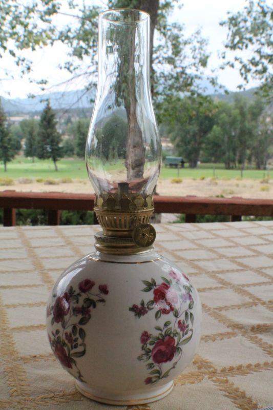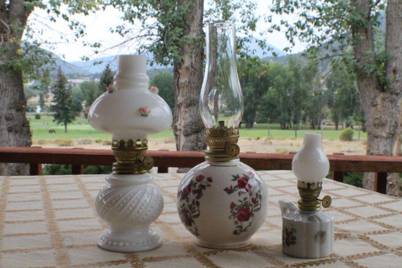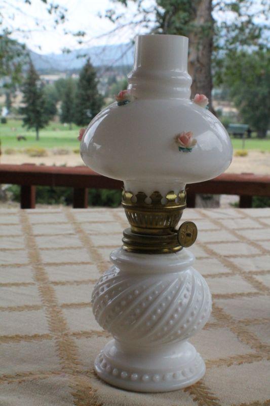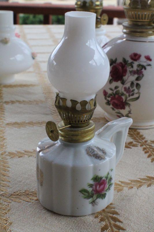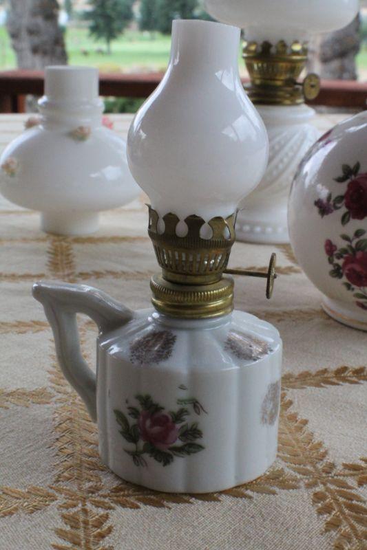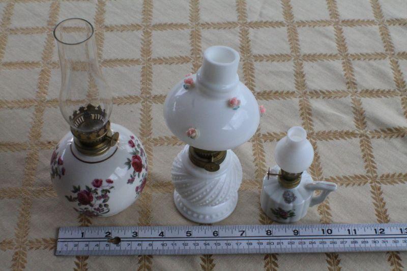 Lot #239: Group of Vintage Small Oil Glass Shade Decorative Lamps #1