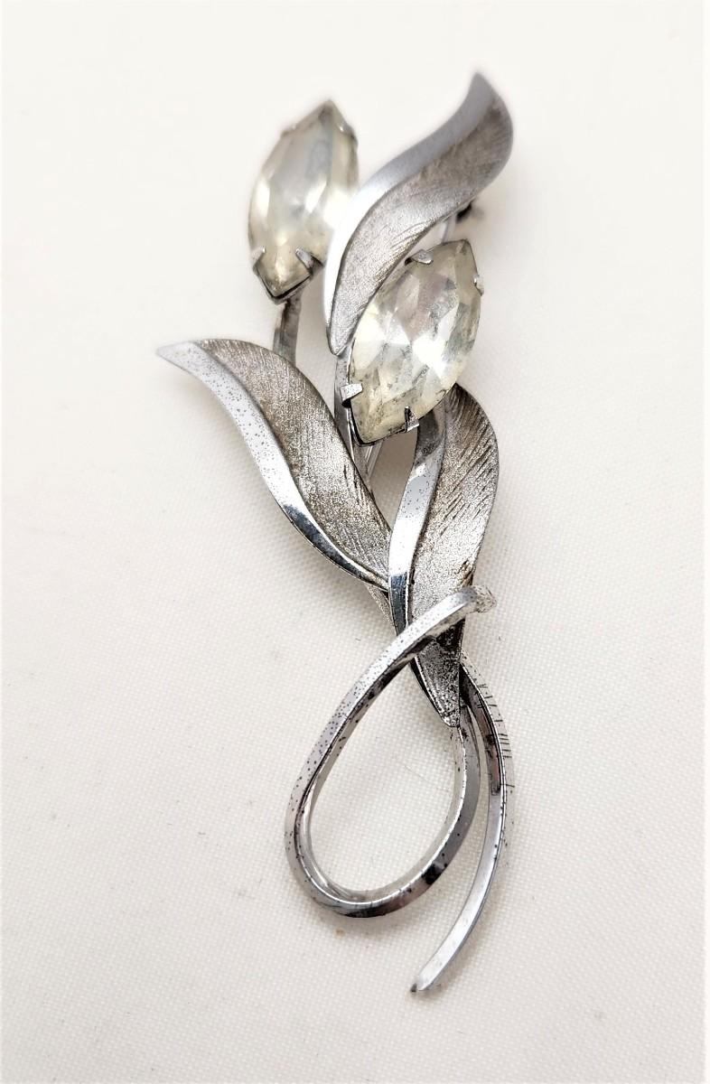 Lot #24 Vintage ART Sterling Silver Brooch set with Rhinestones - 1960's