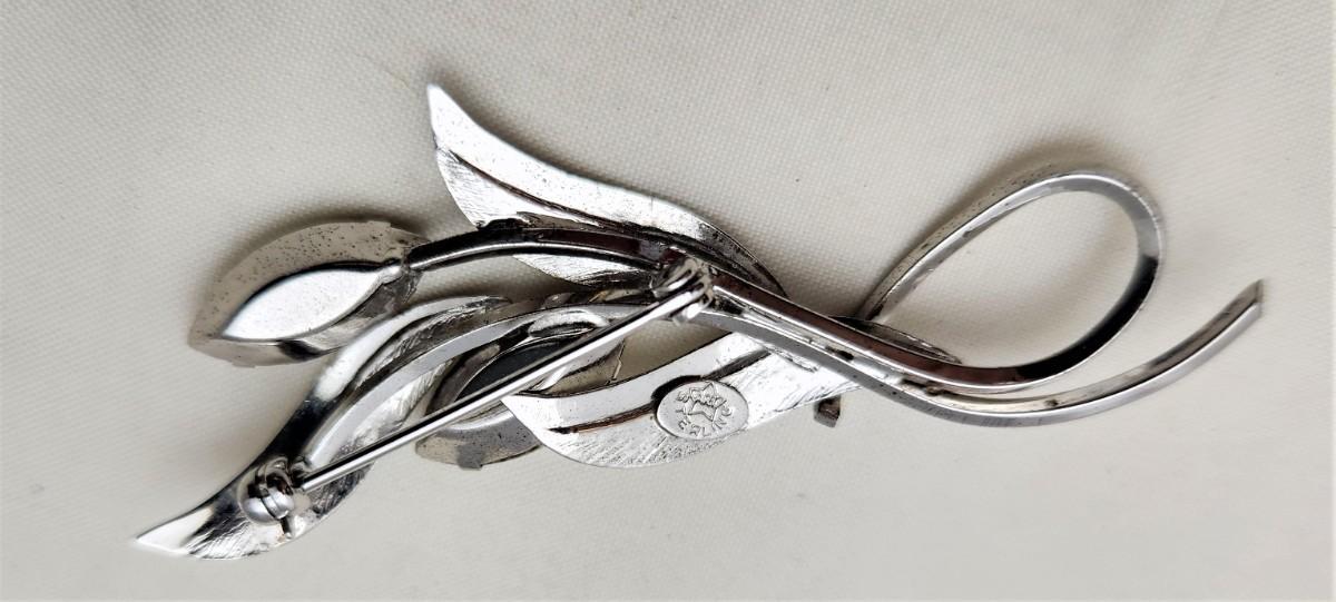 Early 1960's ART brand Sterling Silver (marked) brooch prong set with oval rhinestones. Measures 2.5" long. Good vintage condition.