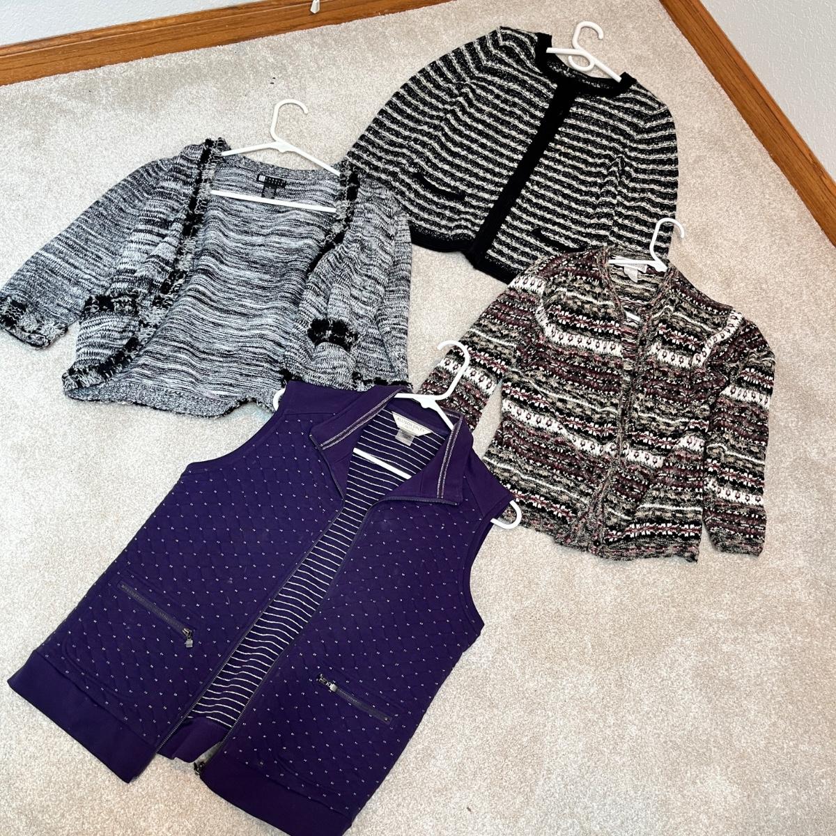 8. Sizes are approximate, you can estimate as our lot number signs are 3.5" long. Also we use an 18" & 36" measuring stick.  We try on certain things to do actual measurements. No guarantees on actual sizes, we try our best!