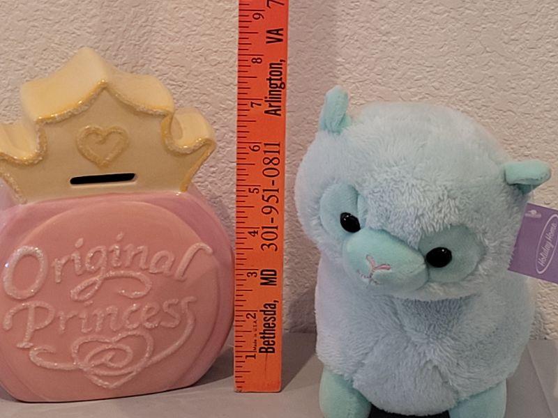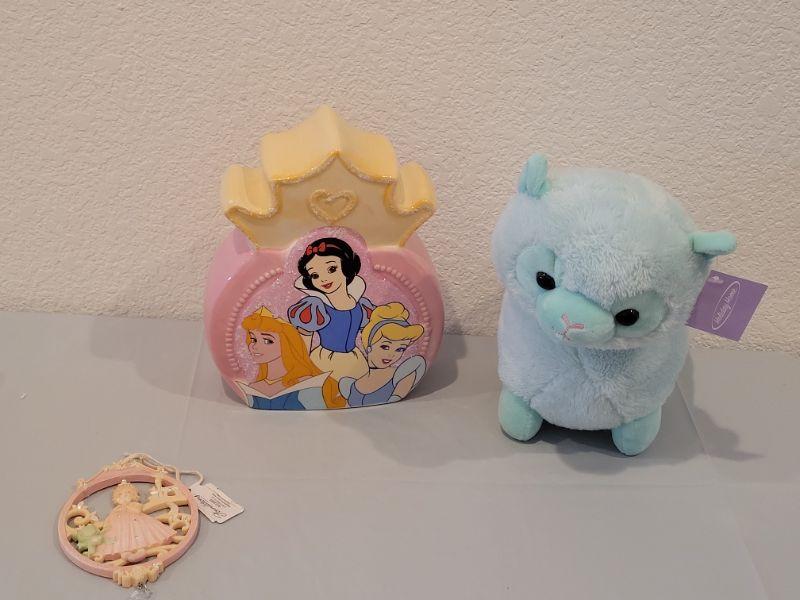 Lot 243: New Disney Princess Bank, Princess Ornament and Llama Plushie