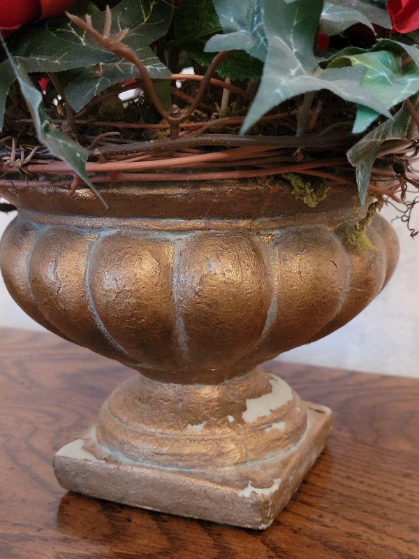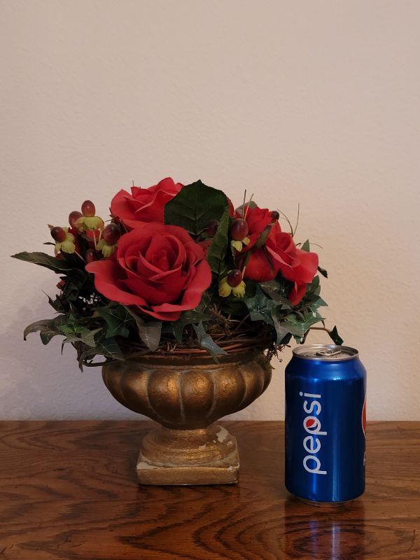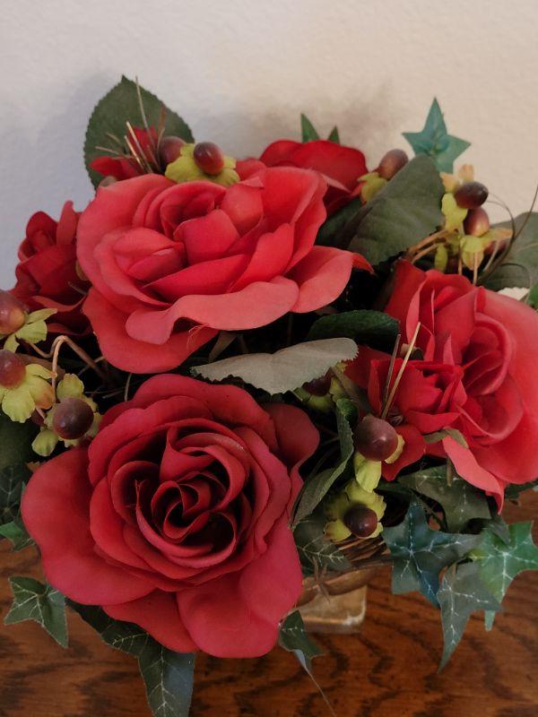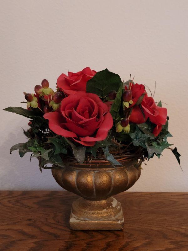 Lot 244: Red Silk Flowers with Decorative Vase (Container is Plastic)