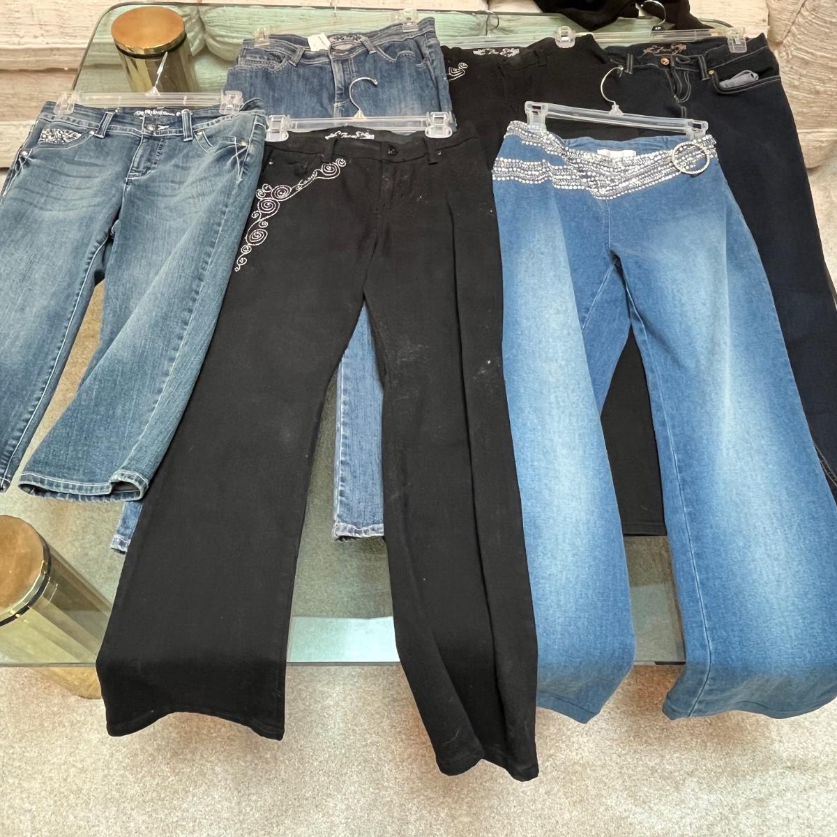 8. Sizes are approximate, you can estimate as our lot number signs are 3.5" long. Also we use an 18" & 36" measuring stick.  We try on certain things to do actual measurements. No guarantees on actual sizes, we try our best!