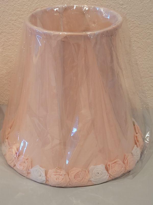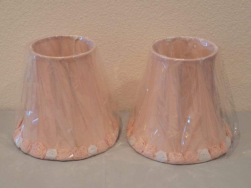 Lot 251: (2) New Pink Lamp Shades with Rose Trim