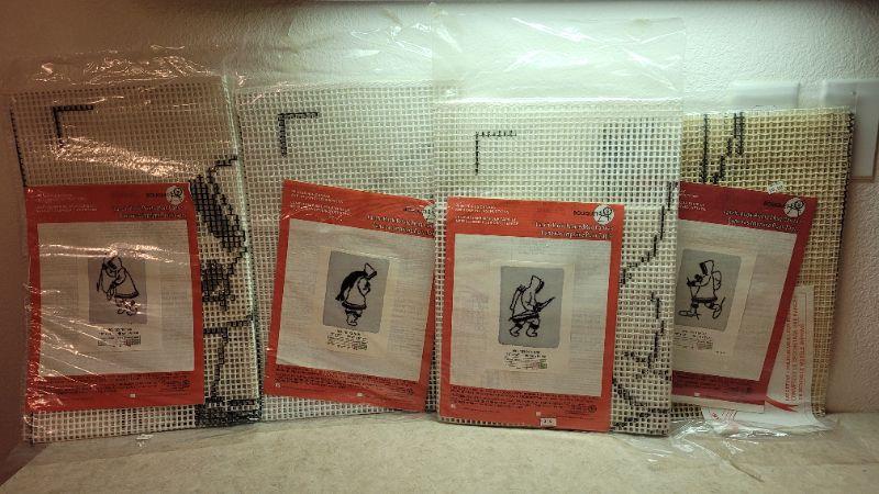 Lot 257: Assortment of (4) Vintage Unused Latch Hook Printed Canvas