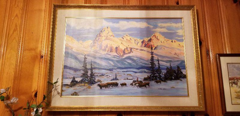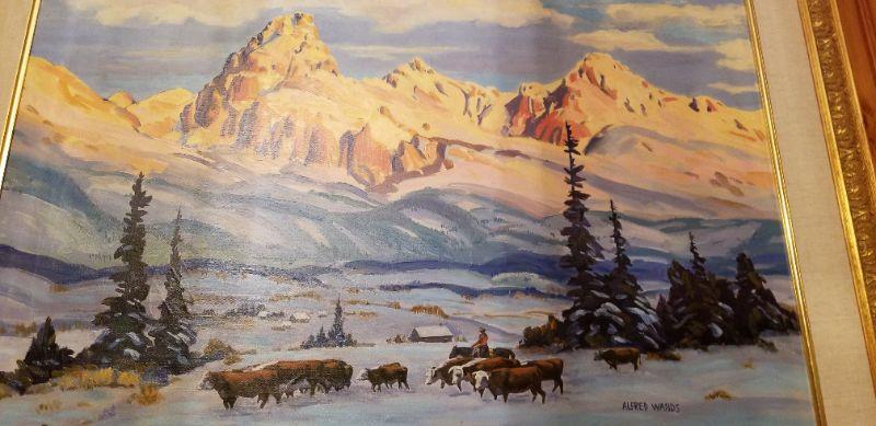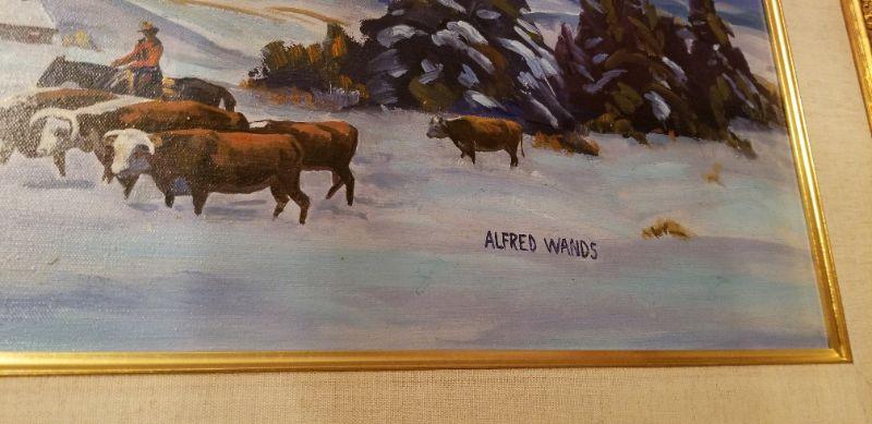 Lot #262: Large Vintage Oil Painting by ALFRED WANDS Cattle Drive Scene