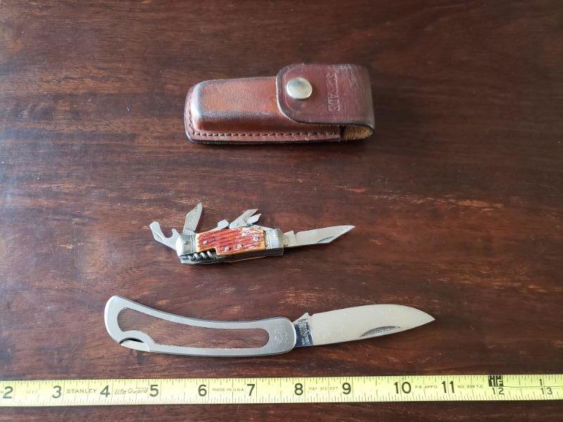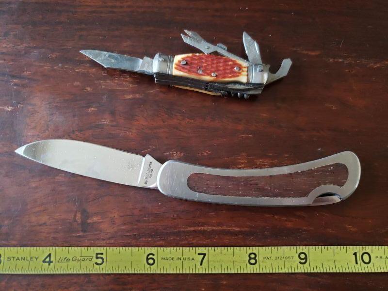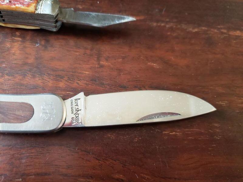 Larger one is a Kershaw Knife (it has been Monogrammed)