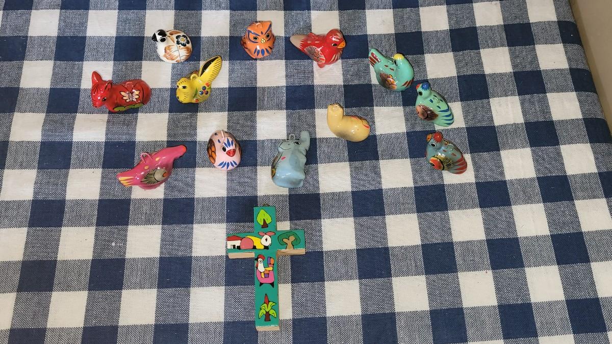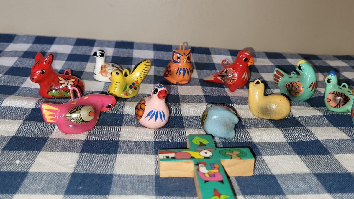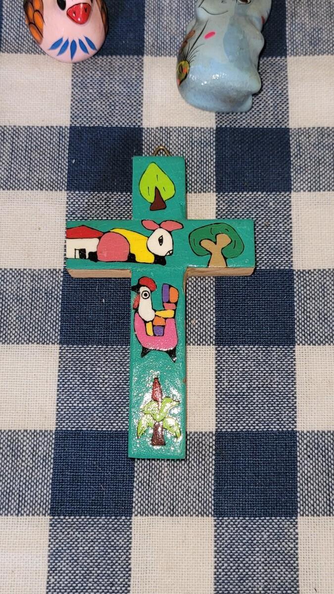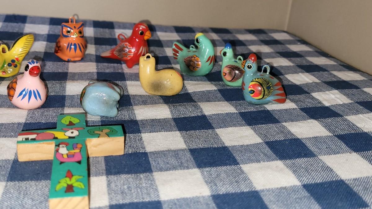 Lot 280: Ceramic Christmas Ornaments and Wood Cross Lot