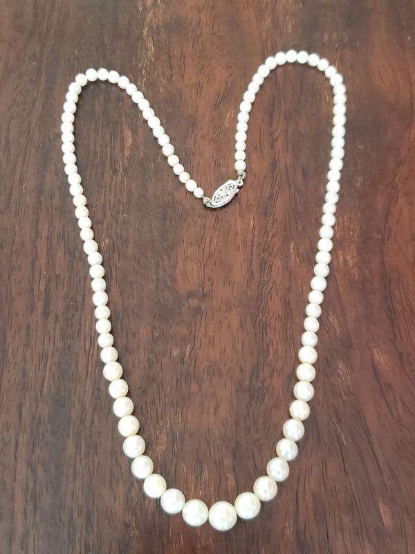 Lot 284: (17.5") Real Pearl Necklace with 14k White Gold Clasp