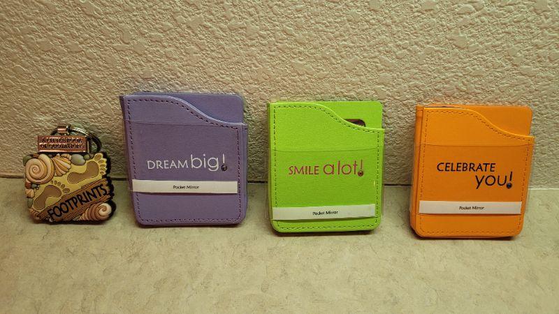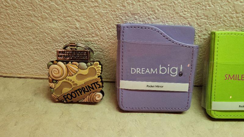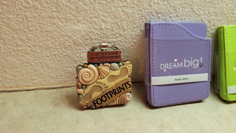 Lot 285: Assortment of New Pocket Mirrors and FOOTPRINTS Mini Book Keychain