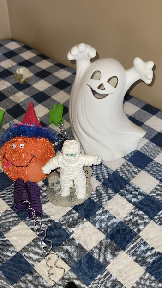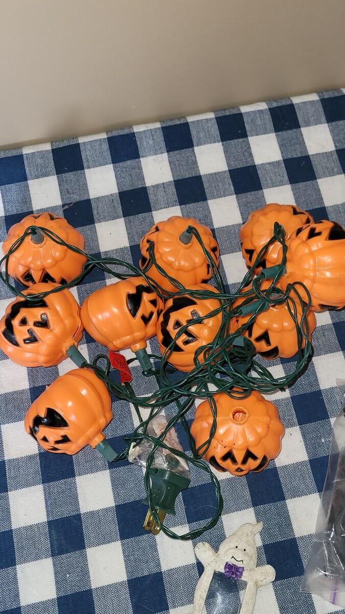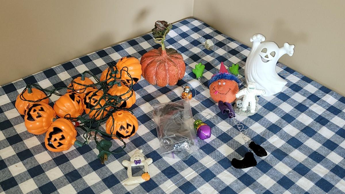 Lot 285: Halloween Decorations Lot (Confetti. Lights, Ornaments, Candleholder ect.)