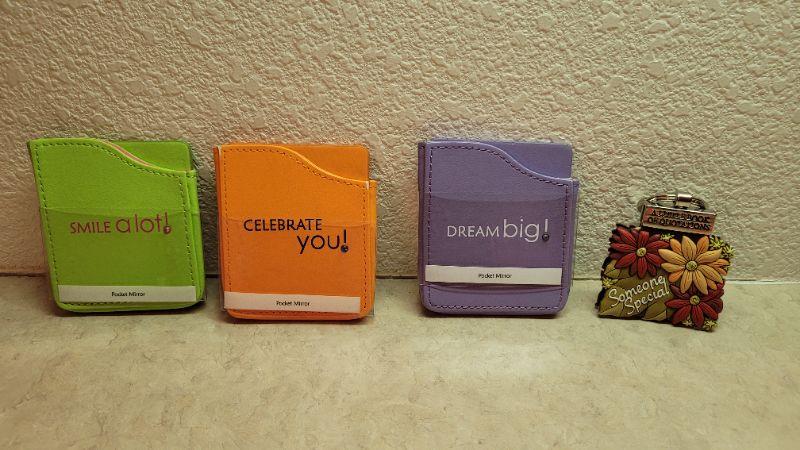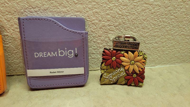 Lot 287: Assorted Pocket Mirrors + Mini Book Keychain