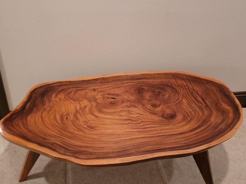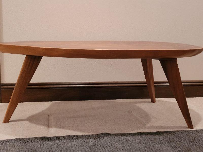 Lot 292: Mid Century Modern Planed Coffee Table (has a small ding in the varnish) 44.5" × 22.5" × 17"