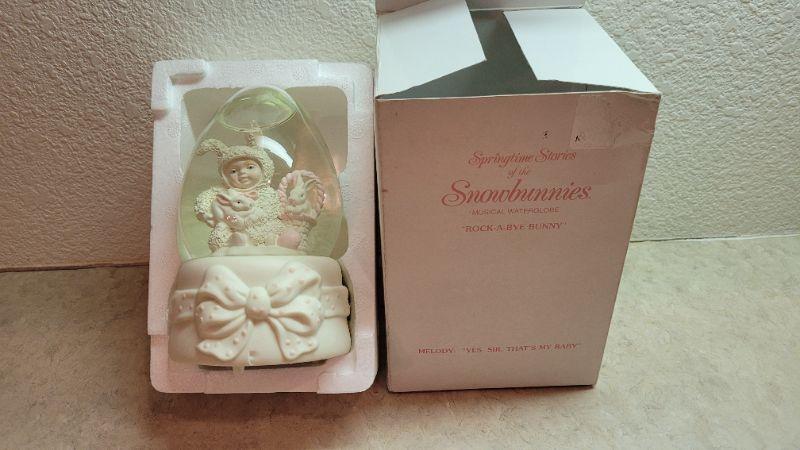 Lot 294: Vintage Dept. 56 SNOWBABIES Water Globe ROCK A BYE BUNNY
