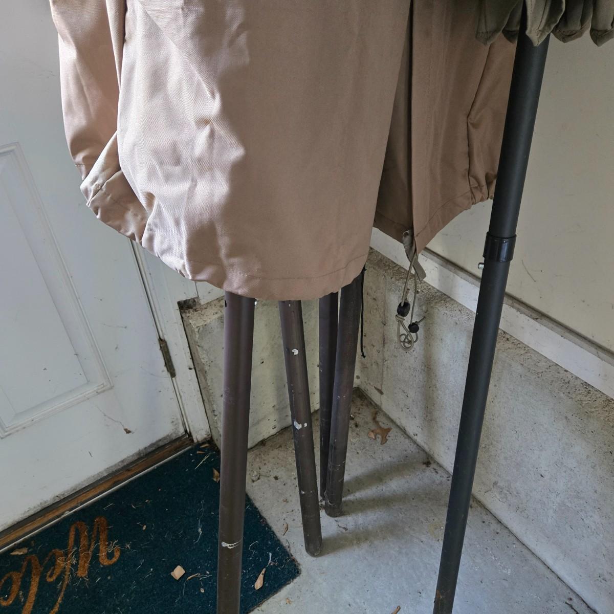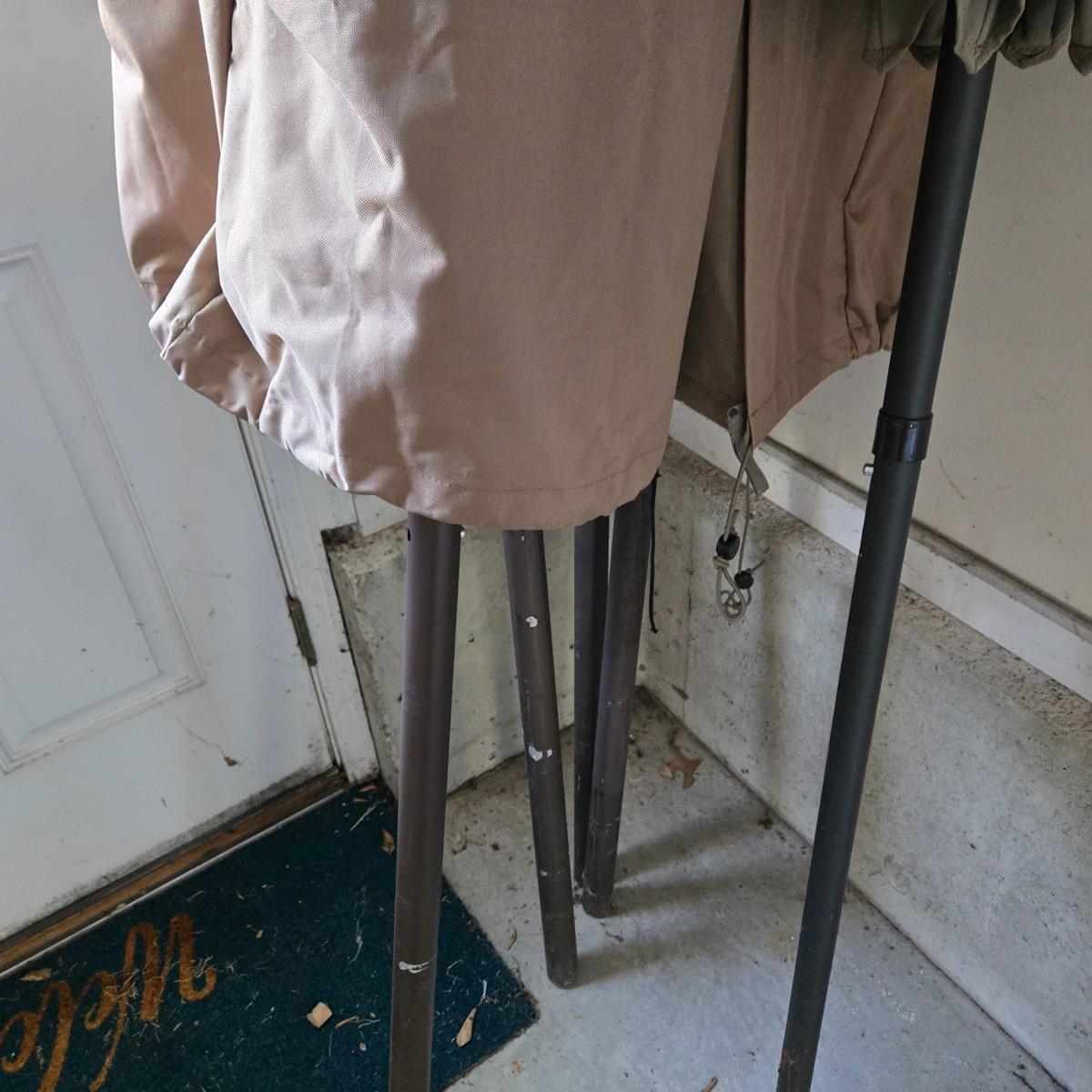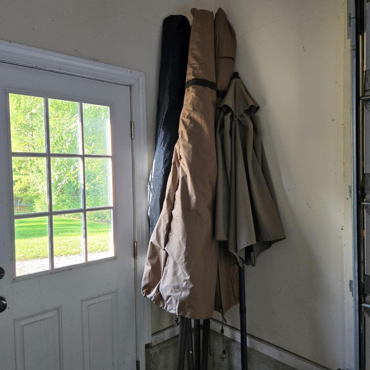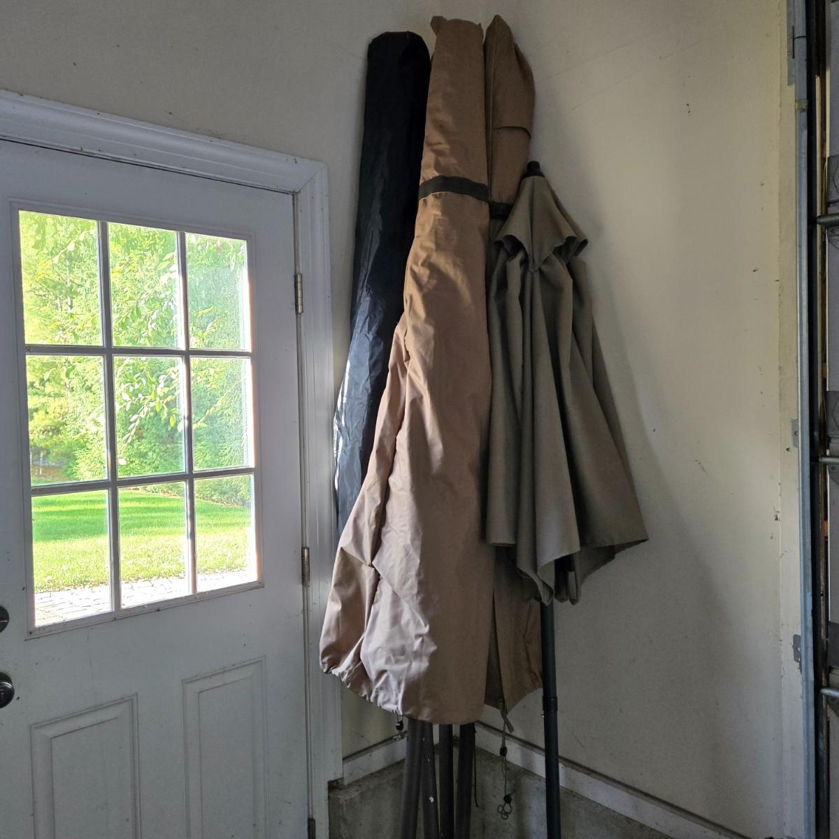 LOT 297G: Four XL Patio Umbrellas with Covers and One Market Umbrella